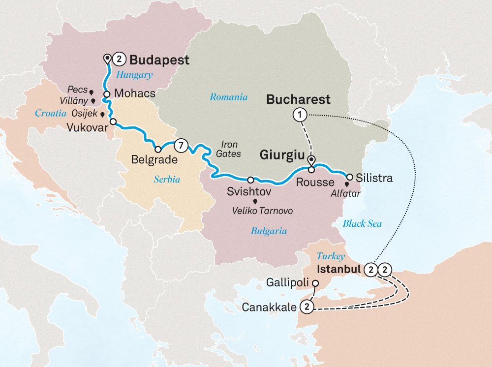 Take a fascinating journey along the Lower Danube, from Budapest all the way to Romania, where the river spills into the Black Sea. Your cruise will take you through untouched lands punctuated by towns and cities that still look as they might have over a hundred years ago. See the hidden gems of the Balkans, from the eclectic Serbian city of Belgrade to the well-preserved Baroque town of Osijek in Croatia, cruising through narrow gorges and soaring cliffs of the Danube’s Iron Gate. Meet the local people, dine with them in their homes and learn what it was like to grow up behind the Iron Curtain. This varied itinerary will also give you ample time to relax on board in luxurious surrounds as you watch Danube River life rolling by. Extend your cruise with a seven-day land journey through Turkey to explore bustling Istanbul and the moving battlefields of Gallipoli. Luxury accommodation, included transfers and a Scenic Tour Director make for seamless travel.