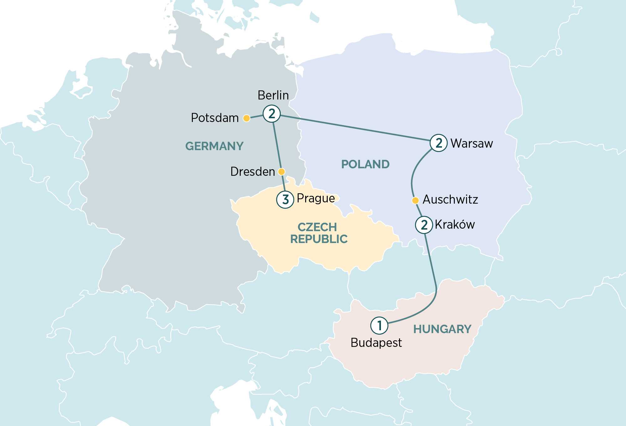 History books, local traditions and rich cultural heritage come vividly to life on this unforgettable journey through the very heart of Eastern Europe and four enthralling nations – the Czech Republic, Germany, Poland and Hungary.