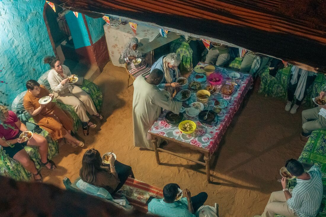 The Nile, Elephantine Island and white-sailed feluccas. You’ll pull into Aswan – Egypt's southernmost city – at around 9am. Its easy-going charm is due in no small part to its large Nubian population. When you arrive, you’ll explore the beautiful Temple of Isis (the Goddess of health, marriage and wisdom), which was rescued from the rising waters of the Nile and relocated on Philae Island. It's a marvel of decorative pylons featuring some of Egypt's finest carvings – definitely one of the gems of Upper Egypt. This afternoon is yours to explore your way. You might choose to visit the excellent Nubian Museum, which showcases the history, art and culture of the Nubians. This evening you’ll experience modern Nubian culture firsthand with a visit to a nearby village. Join a local Nubian family for a memorable dinner where you’ll get to sample traditional dishes like okra stew or tagen, a tasty tomato-based tagen dish, with sanasel bread to mop up the delicious sauces.