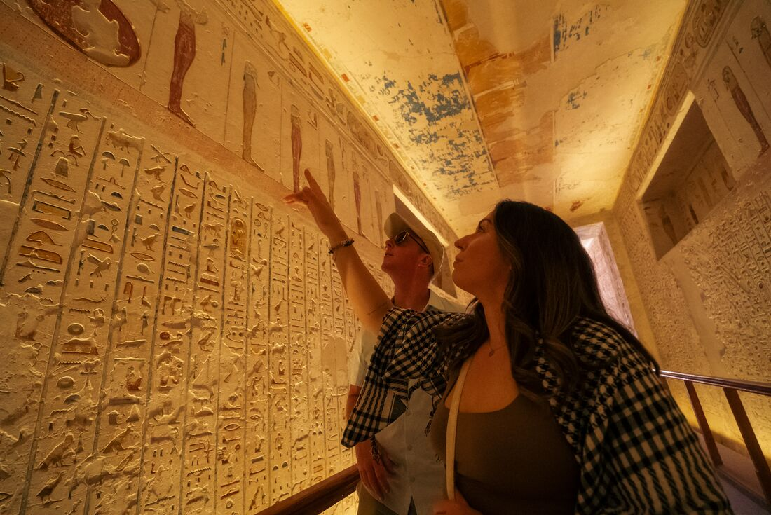 Today you’ll hop in a private minivan and discover ancient Thebes. Your first stop is the Colossi of Memnon – two 17-metre-high statues on Luxor's west bank. Continue on to the Valley of the Kings. Buried under the arid hills here are over 60 tombs of pharaohs, many richly decorated with reliefs and paintings. With your leader, explore this place, where the pharaohs of the New Kingdom (16th to 11th century BC) were secretly interred for all eternity, and where discoveries are still being made. Your group leader will explain the history and legends of these remarkable people, and the significance of the many paintings and hieroglyphics, still well preserved in the deepest tombs. You will visit three of the royal tombs, including Tutankhamun’s tomb where Tutankhamun is buried, then continue to the Temple of Queen Hatshepsut – a colonnaded building set against high cliffs that create a spectacular natural amphitheatre. The afternoon is yours to explore – perhaps you'd like to shop in the market or visit the world's first Mummification Museum where you can discover the secrets of pharaonic preservation.