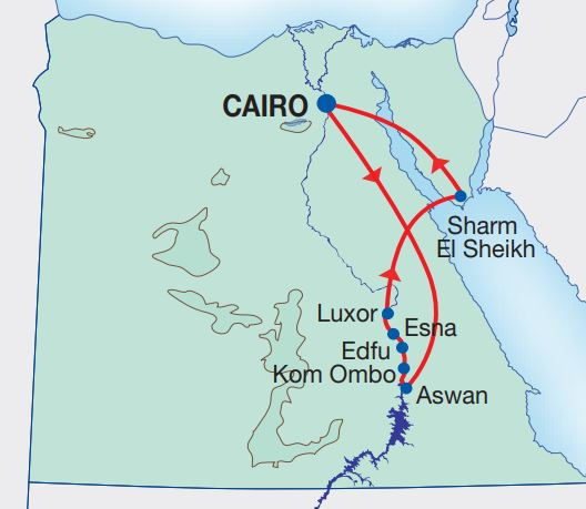 - Economy airfare Cairo - Aswan & Luxor- Sharm El Sheikh & Sharm El Sheikh-Cairo