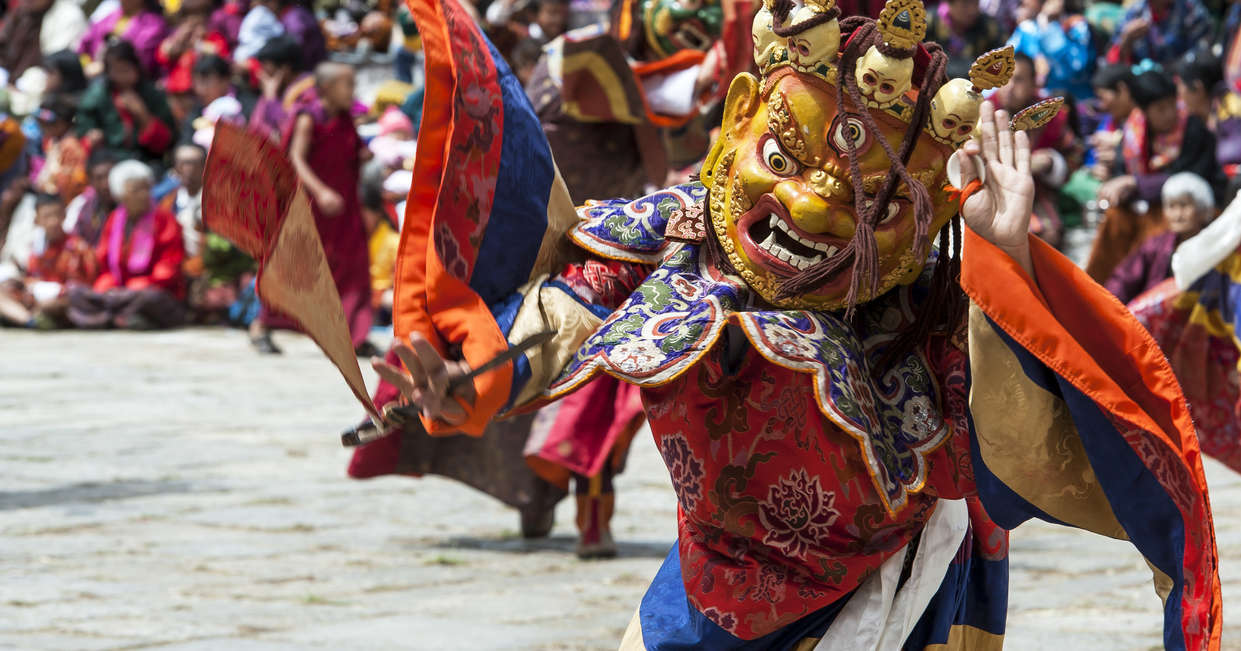 Today we join locals for the annual Punakha Festival. Each monastery in Bhutan hosts a festival every year and they are the highlight of the religious and social calendar. Crowds gather in the grounds of the dzong to watch monks perform traditional dances dressed in colourful brocade costumes and wearing dramatic masks. During the festival period there are dances telling the story of the Tibetan invasion of Bhutan, rituals to worship departed souls and dances commemorating the contruction of the dzong.