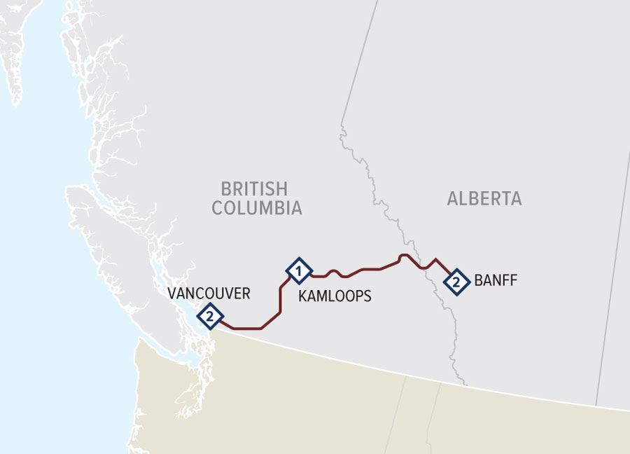 - 3 nights hotel: Vancouver, Kamloops and Banff