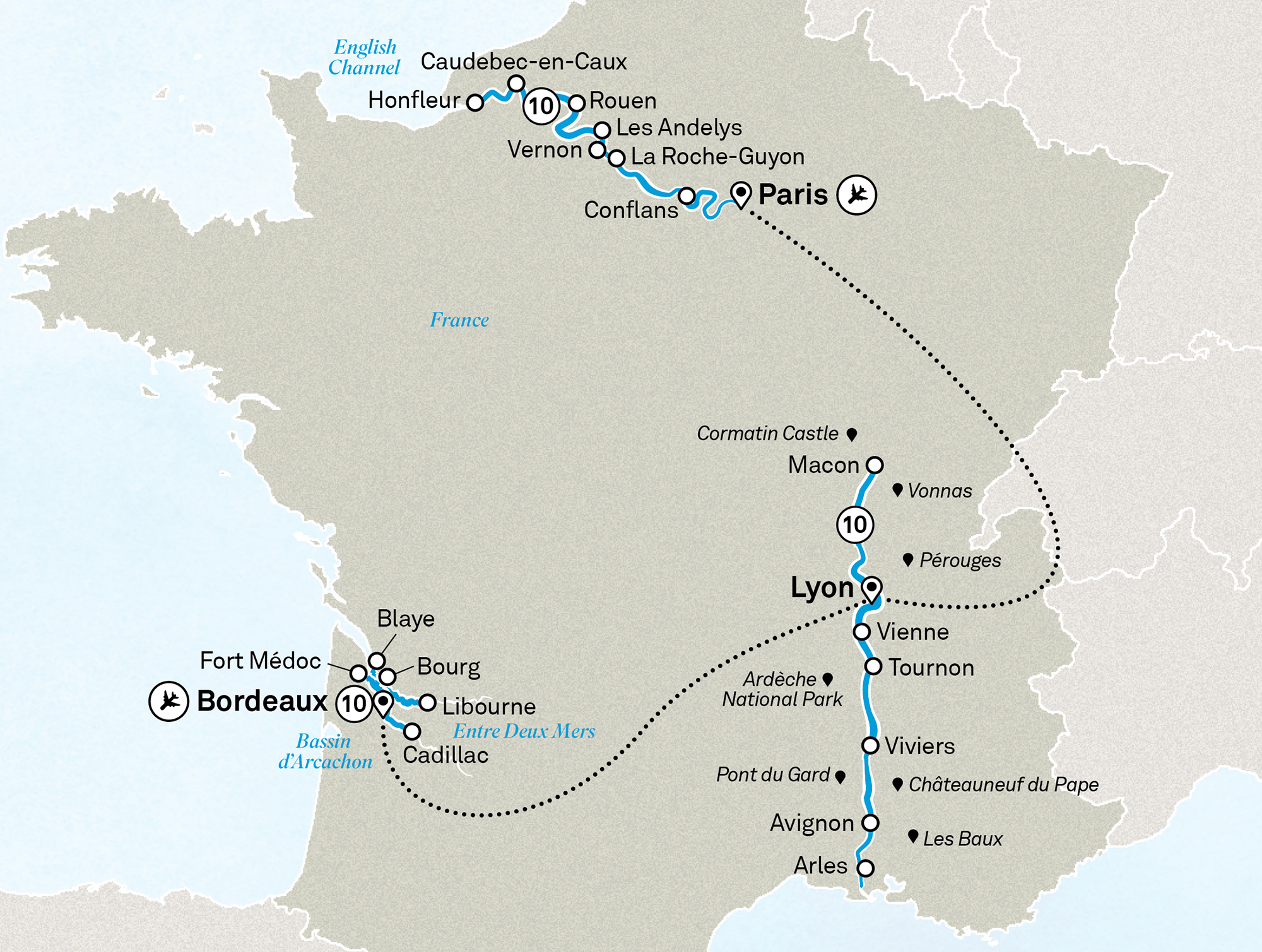 Please note: The Gironde, Dordogne and Garonne waterways are part of a tidal river system which results in changing water levels in the region. Every effort is made to keep to the brochure itinerary however based on tides it will be amended or modified.