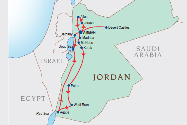 - 4 nights accommodation in Amman, 2 nights Petra, 2 night Aqaba