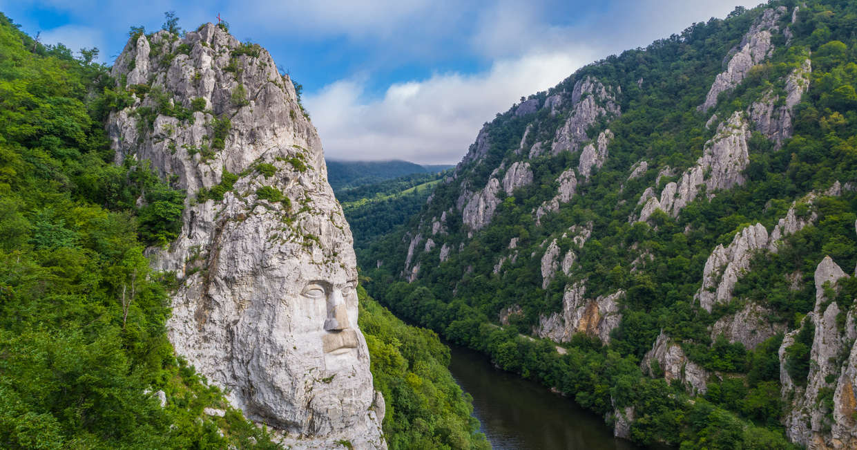 Next, we'll drive to Orsova beside the Danube River where we can see the gigantic statue of King Decebalus' head carved into the rocky river gorge. The rock relief is over 40 metres/131 feet high and 30 metres/98.4 feet wide and it took 10 years to carve. Although its subject is ancient, it was in fact only constructed in the 1990s. King Decebalus was the last king of Dacia (pre-Roman Romania), he fought hard against the Roman emperors Domitian and Trajan to preserve Dacia's independence and as such he is regarded as a Romanian folk hero. You might like to join a boat trip on the Iron Gates Gorge to take a closer look at this monument.