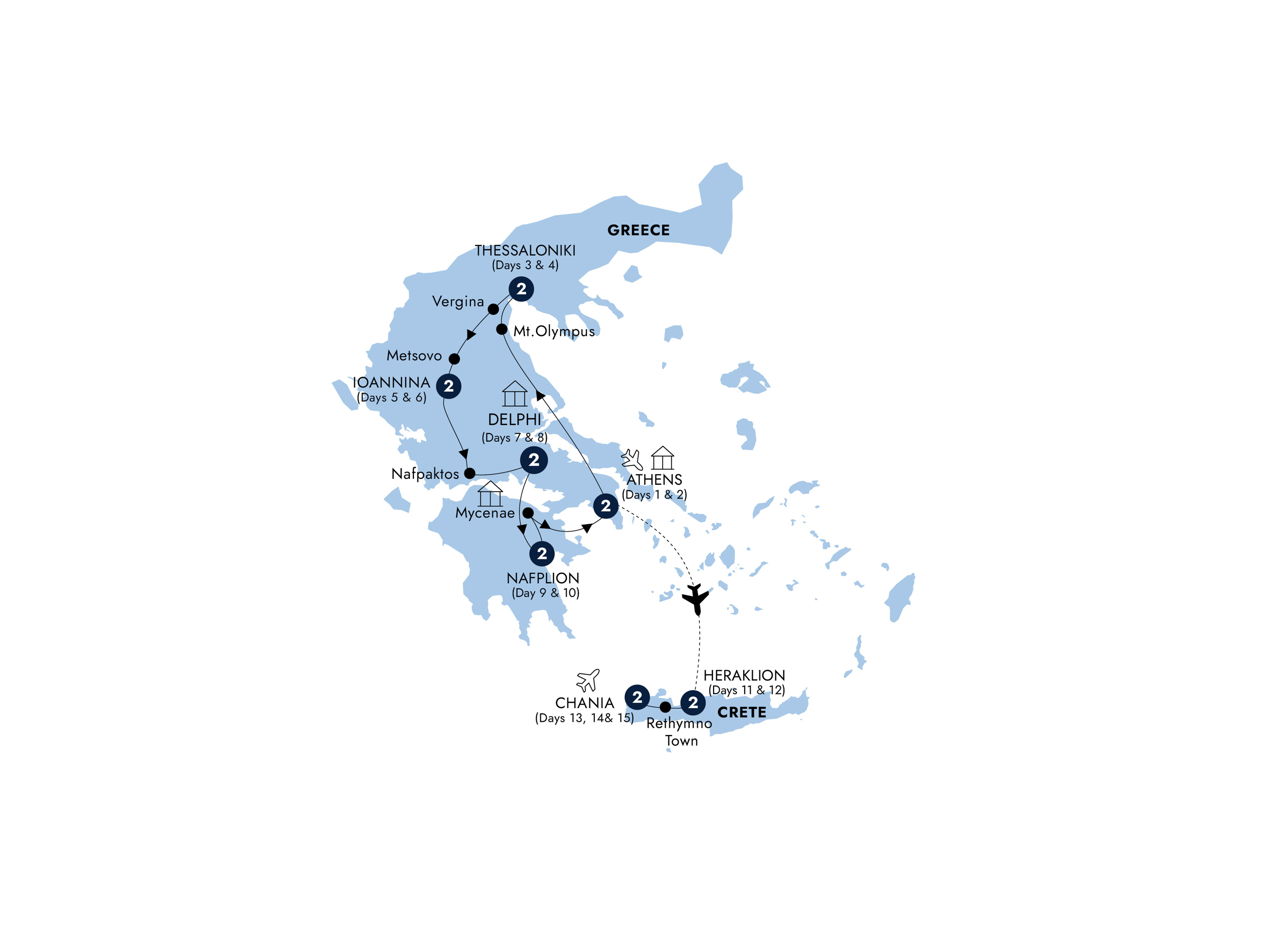 Bask in the splendours of the ancient world on this 15-day Greece tour. Explore the Acropolis and the Arch of Hadrian in Athens. See where the Olympic Games began in 776 B.C at the Temple of Zeus and in the city of Mycenae, take in the giant Cyclopean stones. Thessaloniki’s markets tempt you with regional delicacies and a local beekeeper invites you to tour his family-run honey farm. On the romantic isle of Crete, stroll medieval towns and get up close and personal with archaeological finds.