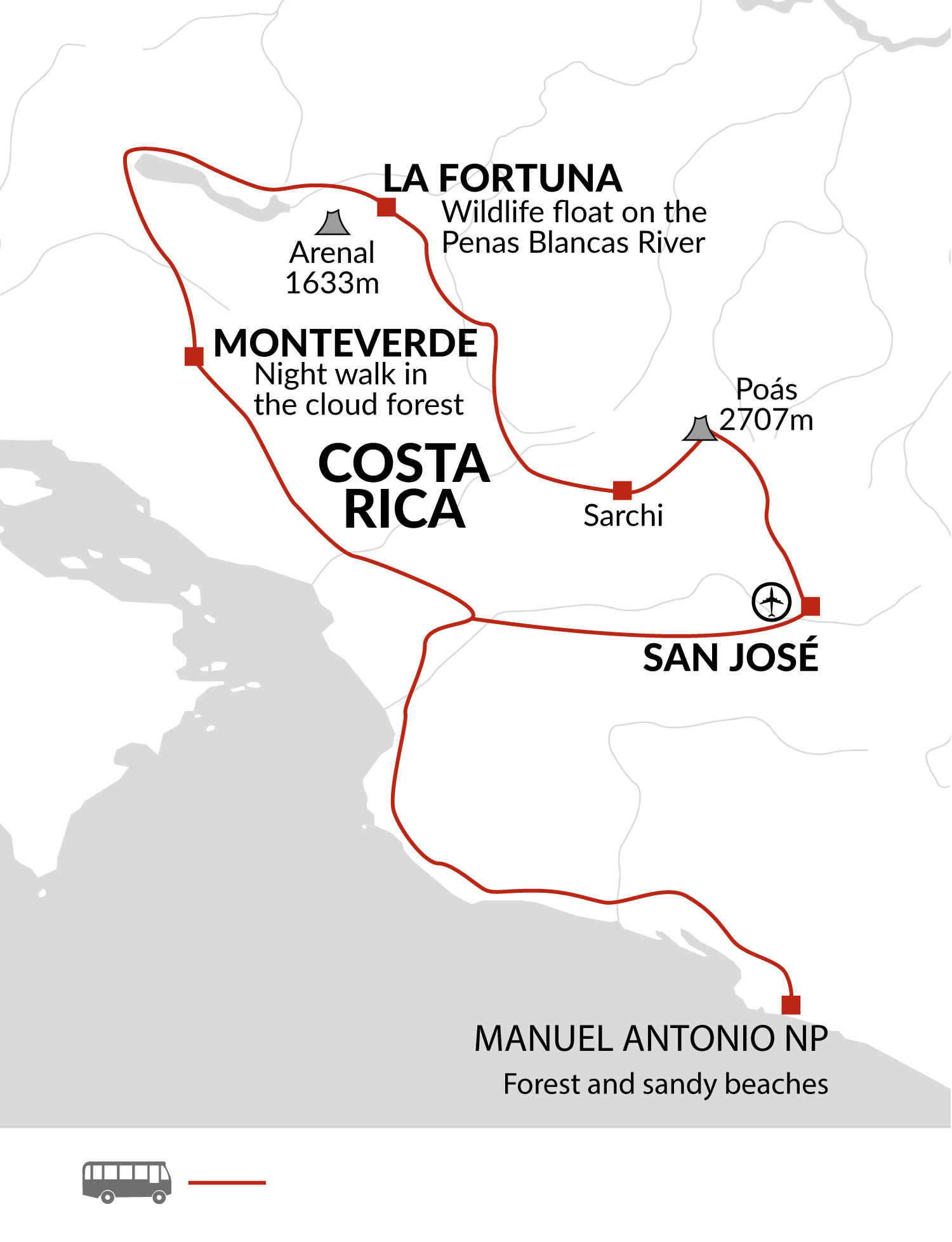 For those arriving in time, our tour leader plans to meet you in the hotel reception at 7pm for a welcome meeting, and for those that wish there'll be the chance to go out for dinner. There are no other activities planned today, so you're free to arrive in San Jose at any time. If you'd like an airport transfer, you'll need to arrive into San Jose's Juan Santamaria International Airport (SJO), which is around a 30-minute drive from our hotel. If you miss the welcome meeting, your tour leader will inform you of any essential information as soon as you catch up.