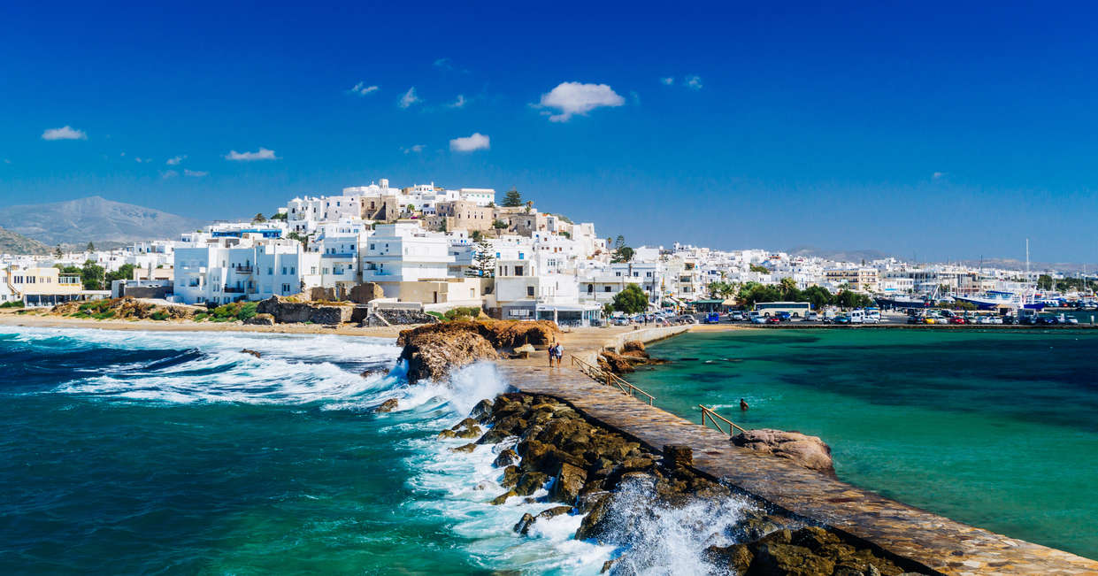 Naxos is the largest and most fertile of the Cyclades Island group, covering an area of around 430 square kilometres, with tranquil beaches, ancient ruins and mountainous villages.
