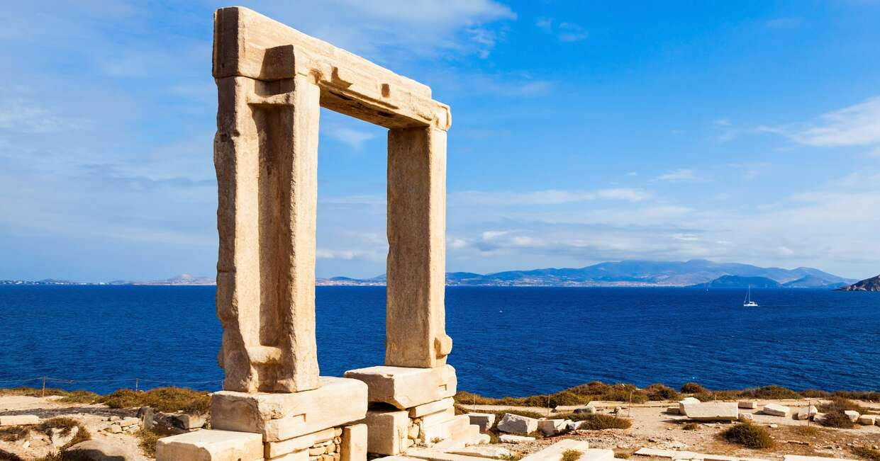 This afternoon, we'll head out to explore Naxos town on foot. At the entrance to the harbour sits the grand Portara marble gate, the doorway of the Temple of Apollo, that has greeted visitors for over 2500 years. The town itself is a mix of whitewashed houses and medieval Venetian mansions, with the fortified 'kastro' (castle) occupying a prominent position overlooking the bay. Our tour leader will show us around the network of alleyways and courtyards, as well as making recommendations for eating out in town. We'll return to our hotel along the promenade alongside Grotta beach.