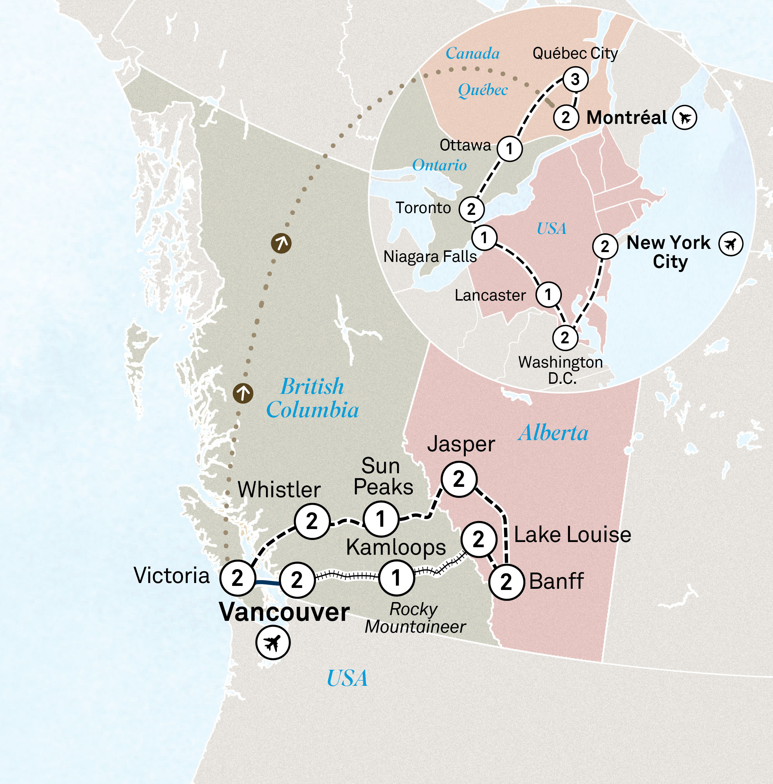 From coastal Vancouver to the cobblestone streets of Québec City, this extraordinary journey showcases the best of Canada and Alaska. Travel by land, sea and rail in seamless luxury as you discover vibrant cities, wild landscapes and enriching cultures.
