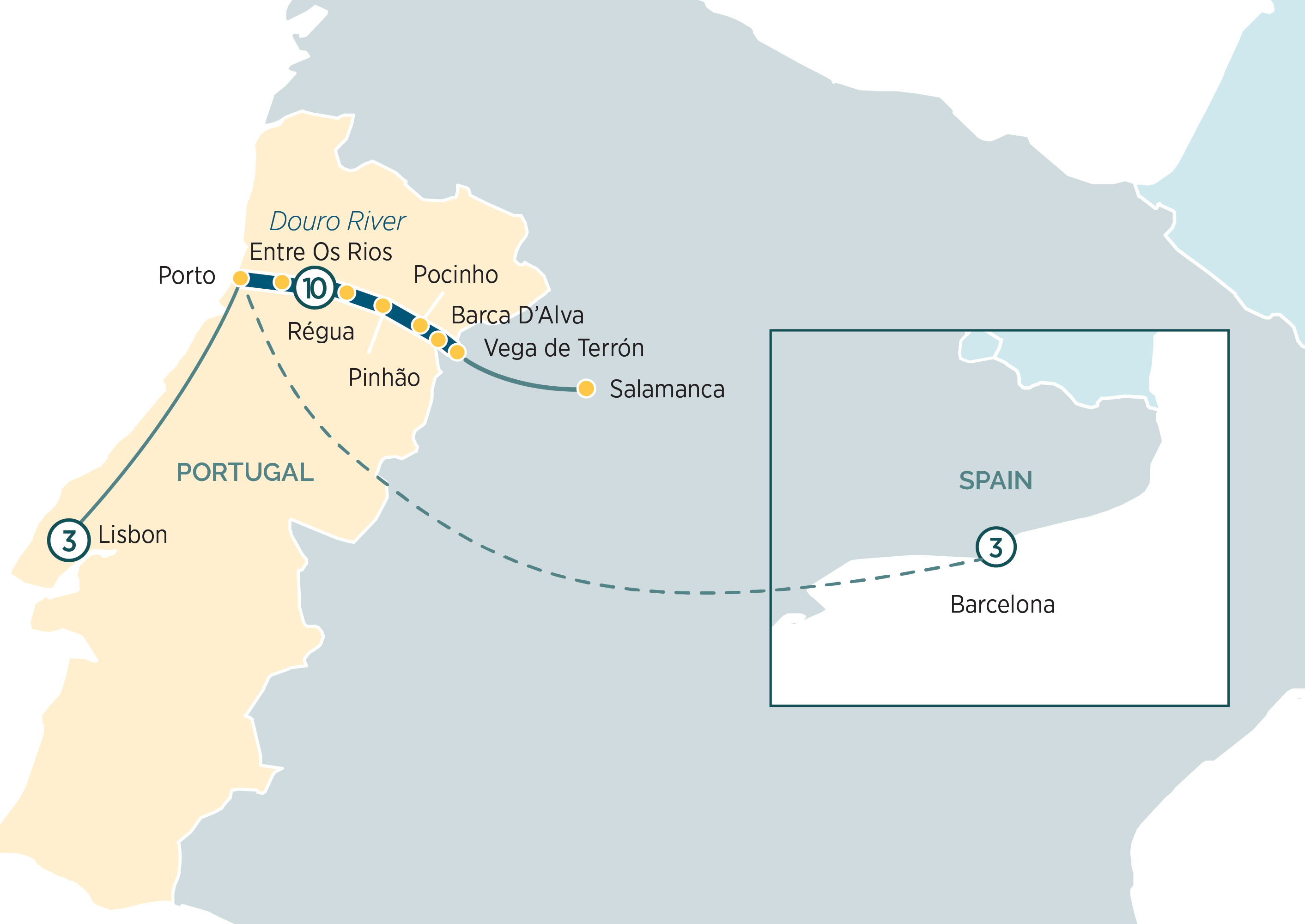 Today, you’ll cross the border into Spain and the small rural village of Vega de Terrón, resting on the confluence of the Douro and Águeda rivers and on the border with Portugal.