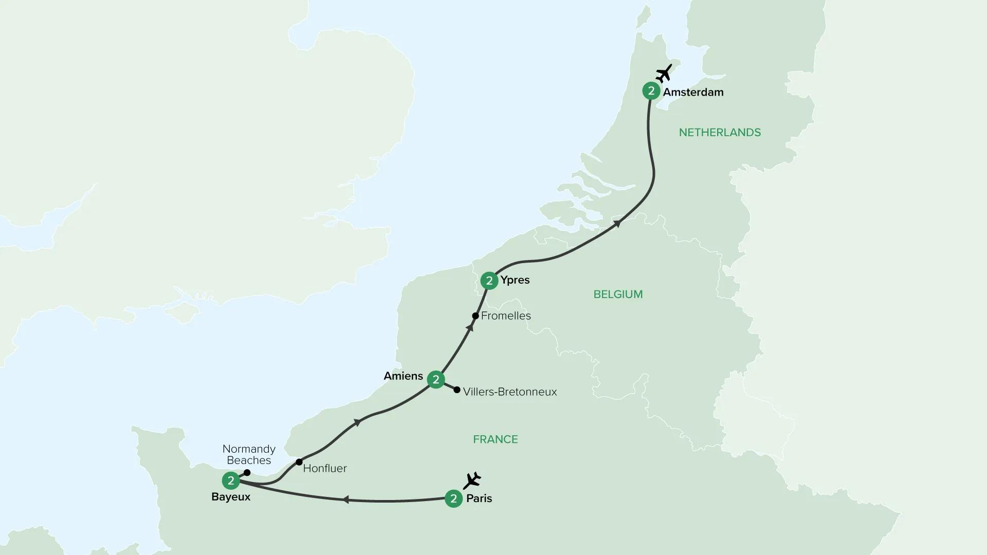 Travel through northern France and Belgium to landscapes where modern history was shaped. Visit memorials, museums and preserved wartime sites that offer moving insight into the First and Second World Wars, brought to life with expert guidance and a carefully planned itinerary. Between moments of remembrance, experience regional culture, local cuisine and welcoming towns and villages that today stand in peaceful contrast to their past.