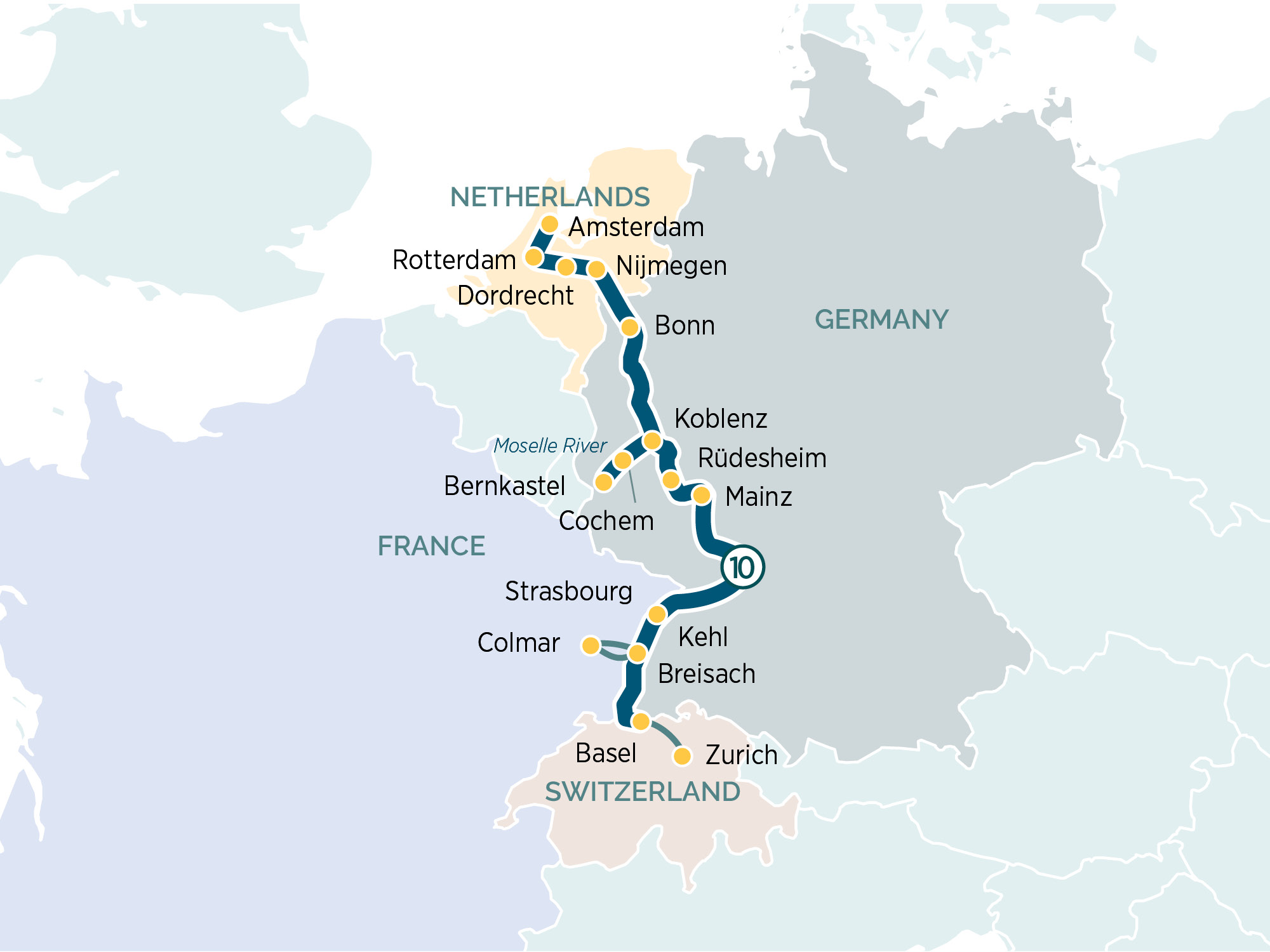 A luxury river cruise and unique experience meandering along the Rhine and Moselle Rivers, immersed in European regions rich in wine-growing and beer traditions, cultural heritage and enchanting scenery.