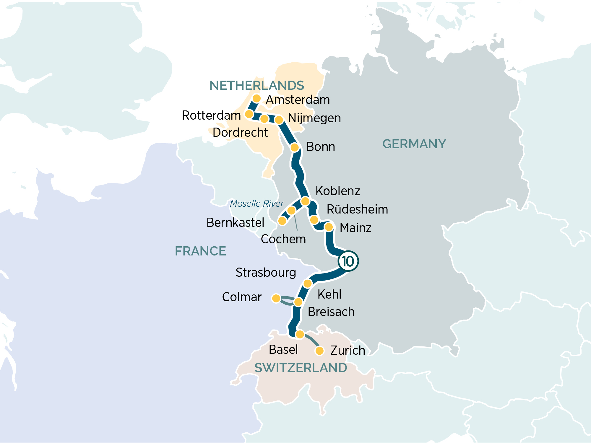 A luxury river cruise and unique experience meandering along the Rhine and Moselle Rivers, immersed in European regions rich in wine-growing and beer traditions, cultural heritage and enchanting scenery.