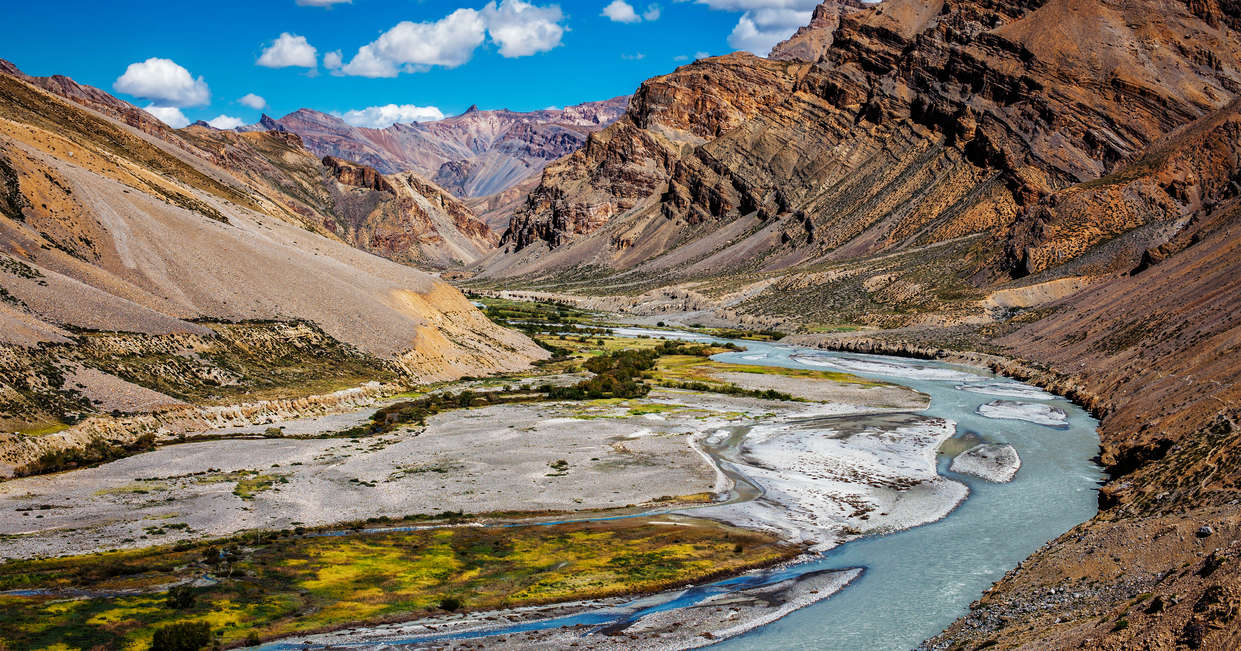 We'll have an early breakfast before setting out on the drive to Nubra Valley, crossing the famous Khardung La Pass, one of the highest motorable roads in the world at 5,602 metres/18,379 feet. The journey takes around six hours, with a short stop at the pass to take in the mountain views and snap a few photos. As we descend into the Nubra Valley, the scenery changes from rocky slopes to a greener landscape dotted with small villages and fields.
