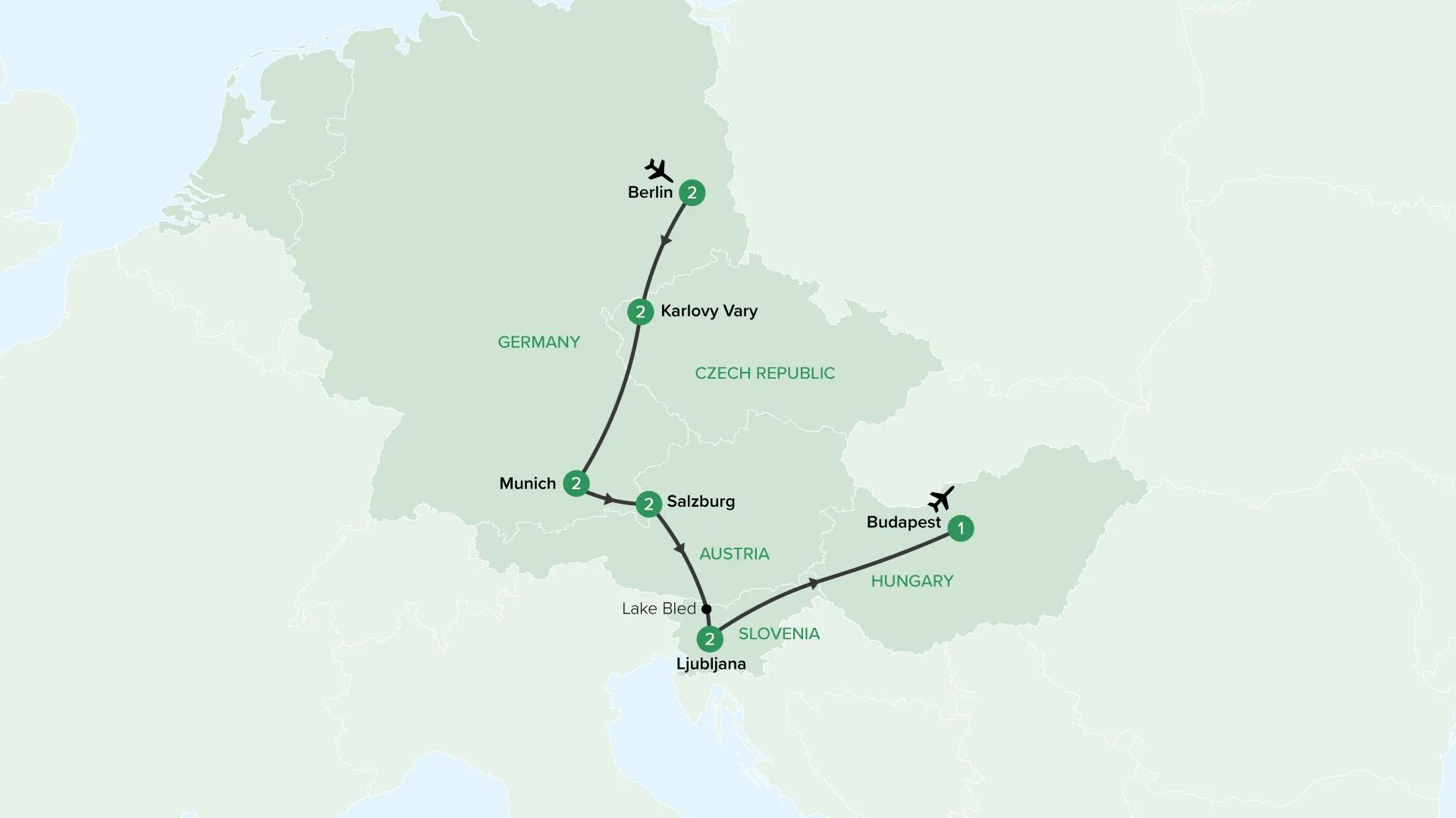 Celebrate the magic of a European winter on a festive journey from Germany to Slovenia. Begin in Berlin, where history and Christmas traditions meet at twinkling markets, before travelling through Dresden and the spa town of Karlovy Vary. Continue to Munich and Salzburg for Alpine scenery, nativity displays and the birthplace of Silent Night, then venture into the Bavarian Alps for a carriage ride and cruise on Lake Königssee. Your holiday concludes in Ljubljana, where baroque streets, riverside cafes and sparkling decorations provide a fitting finale to this enchanting Christmas adventure.