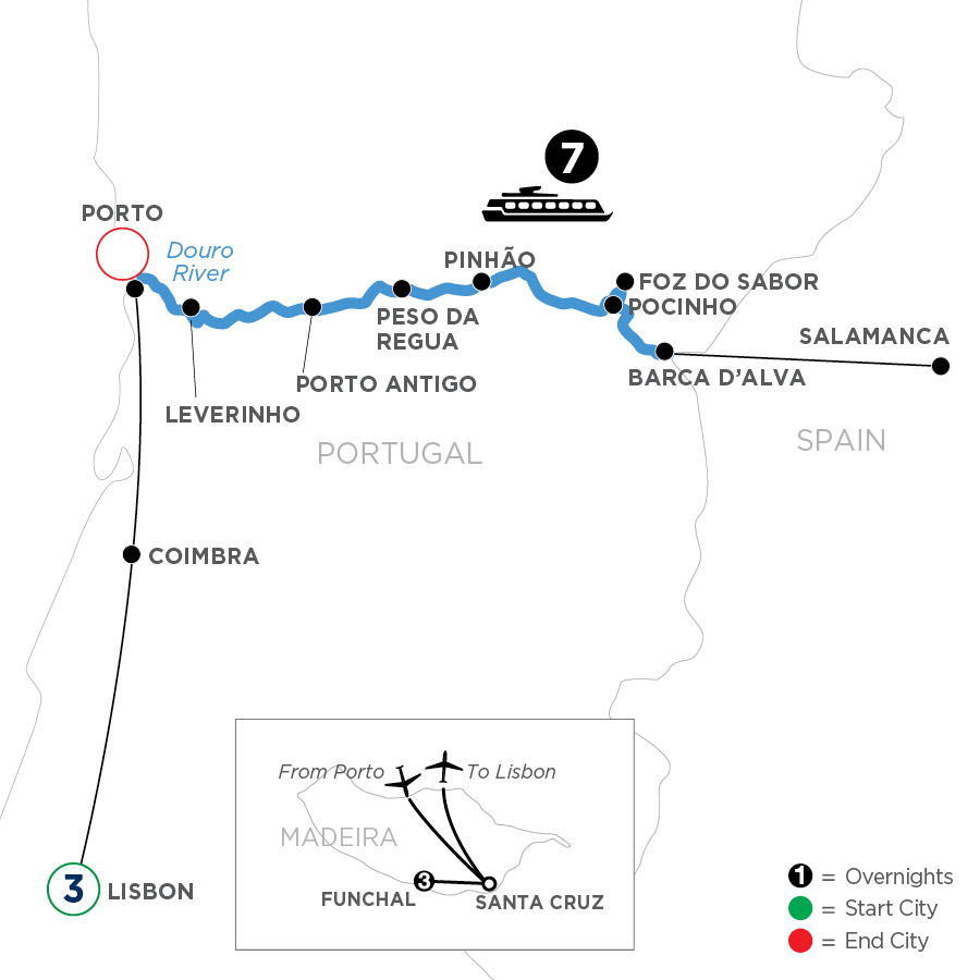 Trade ordinary holidays for extraordinary moments along the Douro Valley this festive season. Kick off your adventure with three nights in Lisbon, where festive squares and iconic sights set the scene. Journey north through Coimbra’s medieval charm, before boarding our newest ship, the Avalon AlegriaSM, where you’ll cruise through the River of Gold’s dramatic slopes and famous vineyards just as the first Christmas lights begin to glow. Embark on your river cruise in Porto, where the days are spent exploring Port wine cellars and ancient avenues, and the nights are filled with the soulful sound of Fado. As we sail toward the Spanish border, the scenery shifts to the medieval walls of Castelo Rodrigo and the golden stone of Salamanca. Whether you’re learning to bake Portuguese pastries, crafting traditional Christmas ornaments, tasting Vinho Verde at a historic estate, or wandering through the hilltop castle in Guimarães, with Avalon, you’re free to follow your curiosity and celebrate the season your way. Discover the world’s oldest demarcated wine region at its most magical, with festive traditions, seasonal flavors, and a glass of Port never out of reach.Extend your journey with three nights on Madeira, where Funchal’s decorated squares and island traditions create a joyful finale. Explore scenic villages, sample Madeira wine, and soak in the celebratory spirit that makes this island escape the perfect ending to your festive adventure.