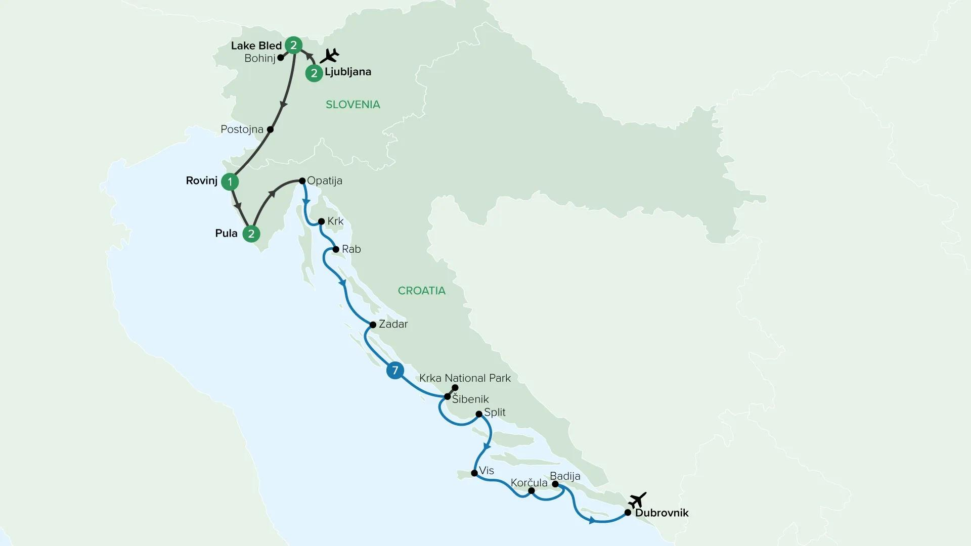 Begin with a Small Group Tour through Slovenia and Croatia, travelling from alpine lakes and elegant capitals to historic towns rich in culture and character. Then board Travelmarvel’s boutique charter to cruise the Dalmatian Coast, offering the perfect perspective of this history-rich slice of paradise. Sail the Adriatic on an intimate coastal voyage, pausing for swims in clear waters and guided explorations of sunlit islands and walled cities ashore.