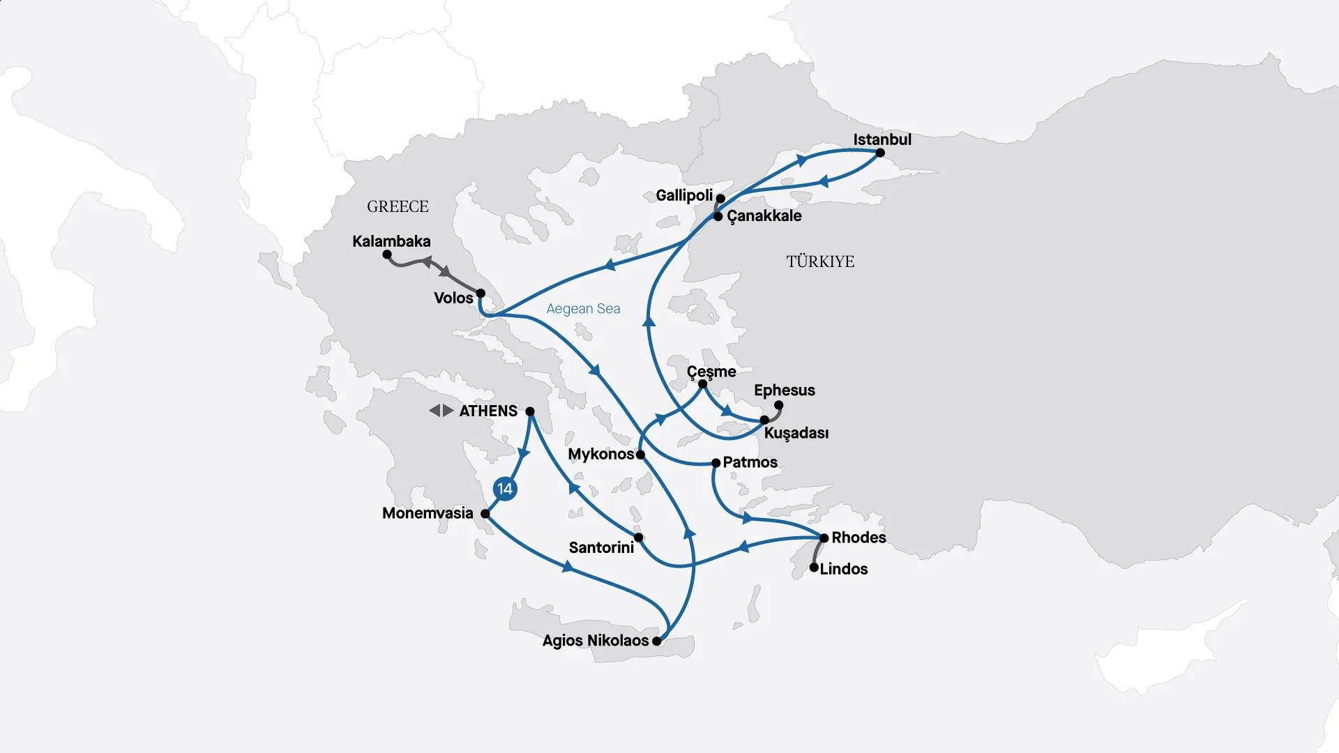 Uncover the treasures of the Greek Isles and Türkiye on this delightful cruise, beginning and ending in the timeless city of Athens. Discover remote islands accessible only to small ships like yours, and step ashore for gentle explorations of charming medieval towns, where you’ll sample local snacks paired with regional liqueurs. Visit iconic islands famed for their whitewashed architecture and vivid blue accents. In Türkiye, highlights include a visit to the historic Gallipoli Peninsula to experience the powerful Anzac legacy, an exclusive after-hours visit to the ancient city of Ephesus for a private classical music performance, and the legendary city of Istanbul located at the crossroads of Asia and Europe.
