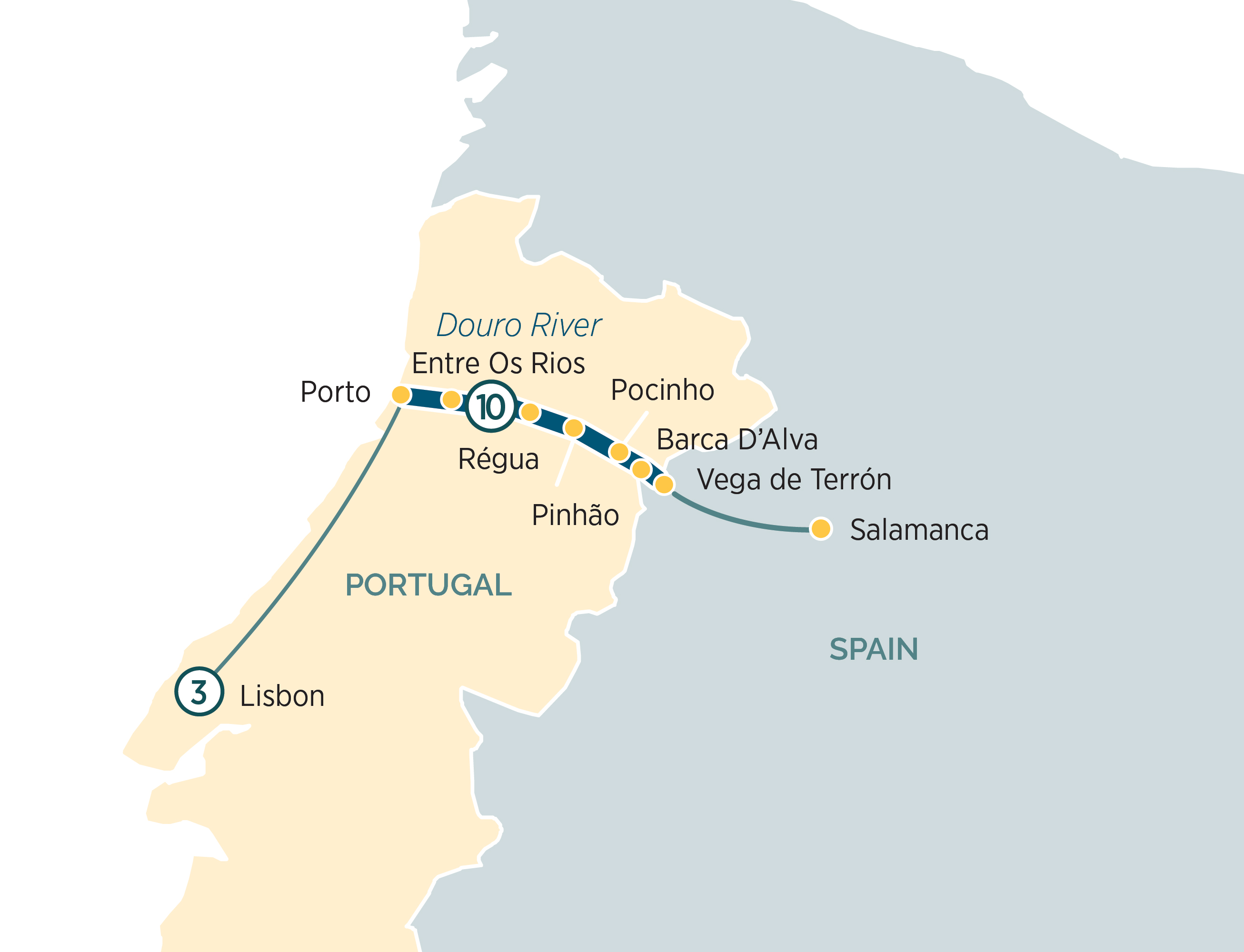Today, you’ll cross the border into Spain and the small rural village of Vega de Terrón, resting on the confluence of the Douro and Águeda rivers and on the border with Portugal.