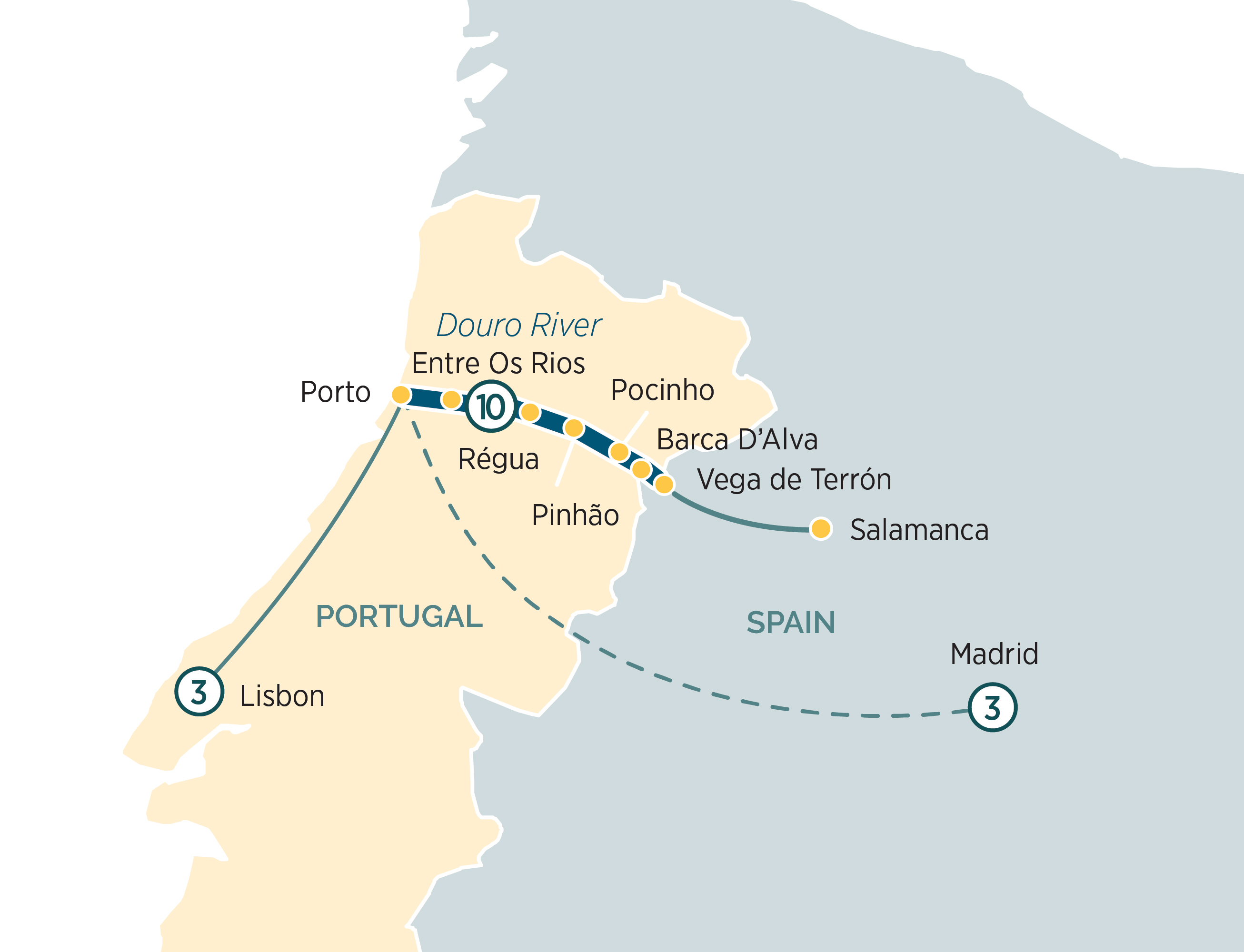 Today, you’ll cross the border into Spain and the small rural village of Vega de Terrón, resting on the confluence of the Douro and Águeda rivers and on the border with Portugal.