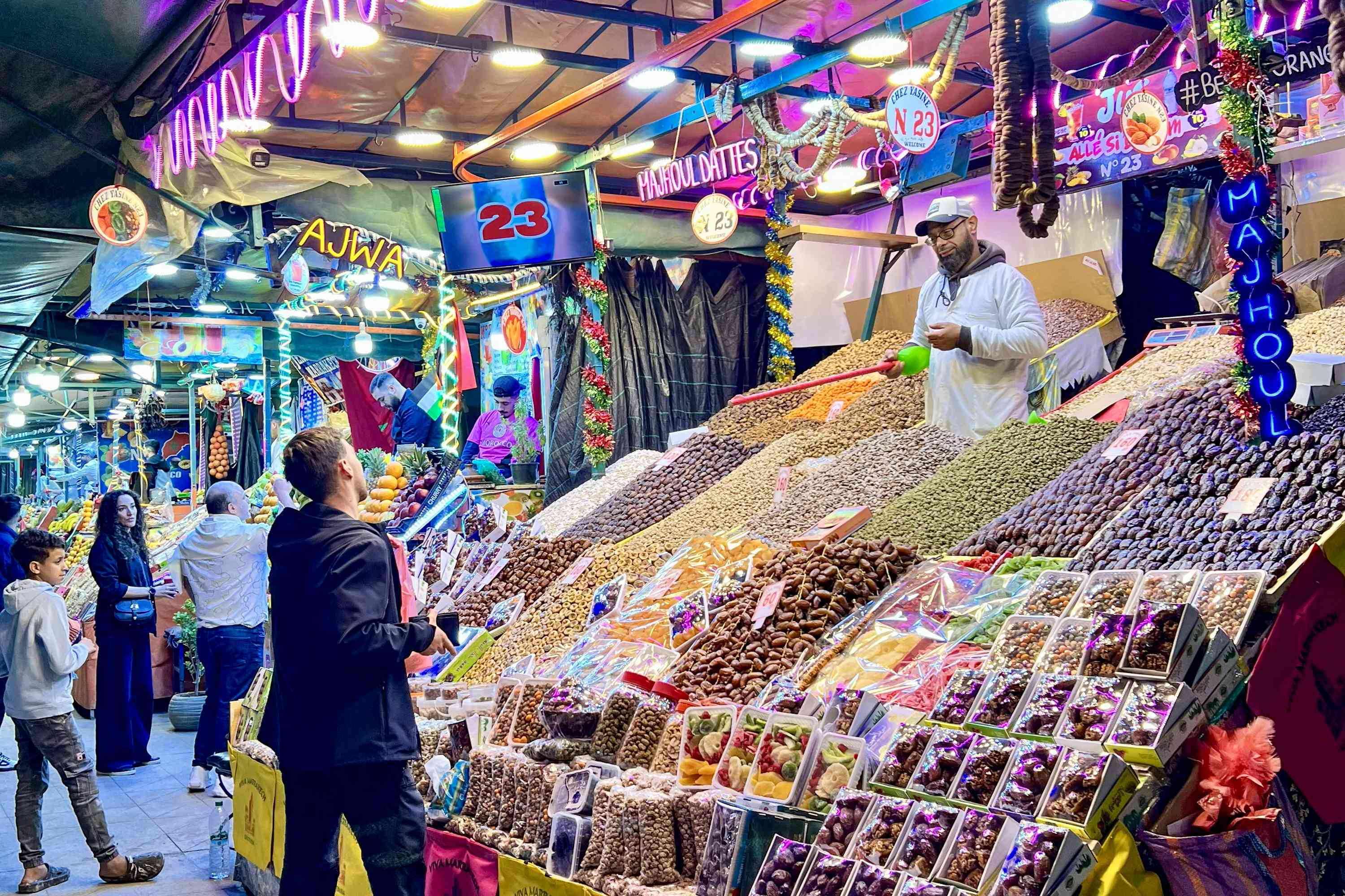 Tonight, we’ll have the chance to enjoy a real taste of Morocco at dinner, complete with dancers and musicians in a local restaurant. We will also experience the atmosphere of Marrakesh’s main square, Jemaa el-Fnaa, passing through a wondrous mix of food, music and entertainment as we soak up the energy of this lively city. Jemaa el-Fnaa has been Marrakesh’s vibrant heart for centuries, once a site for public gatherings, today it pulses with food stalls, musicians and storytellers. By night, the square transforms into a lively festival of performers and open-air cafés, capturing the city’s energy and eclectic spirit.