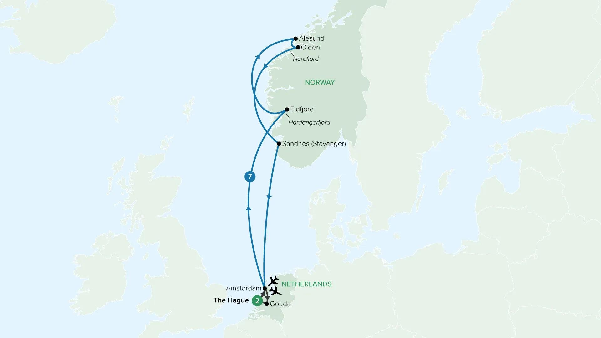 Experience Northern Europe on a journey that blends Dutch heritage with a Holland America Line cruise through Norway’s spectacular fjords. From the elegant streets of The Hague and the historic charm of Gouda to mountain-framed villages and colourful coastal ports, enjoy immersive shore visits, a countryside farm experience and relaxing days at sea.