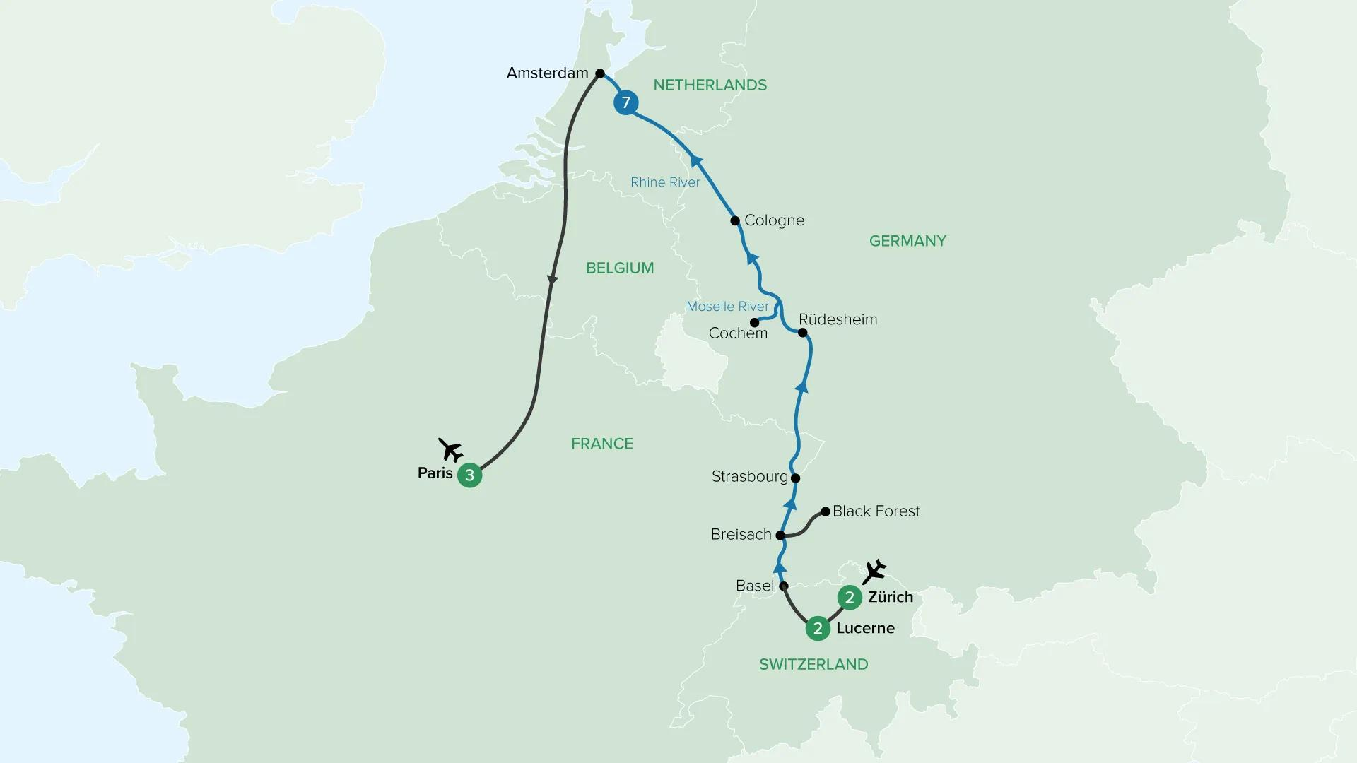 Enjoy the magic of Christmas in Lucerne and Zürich. Beautiful sights and idyllic Christmas markets wait to greet you along the Rhine and Moselle rivers during the festive season. Enjoy the magic of Christmas in Strasbourg, the capital of Alsace. Discover Cochem in the Moselle Valley, sprinkled with a thousand twinkling lights, and glide along Amsterdam’s network of canals.