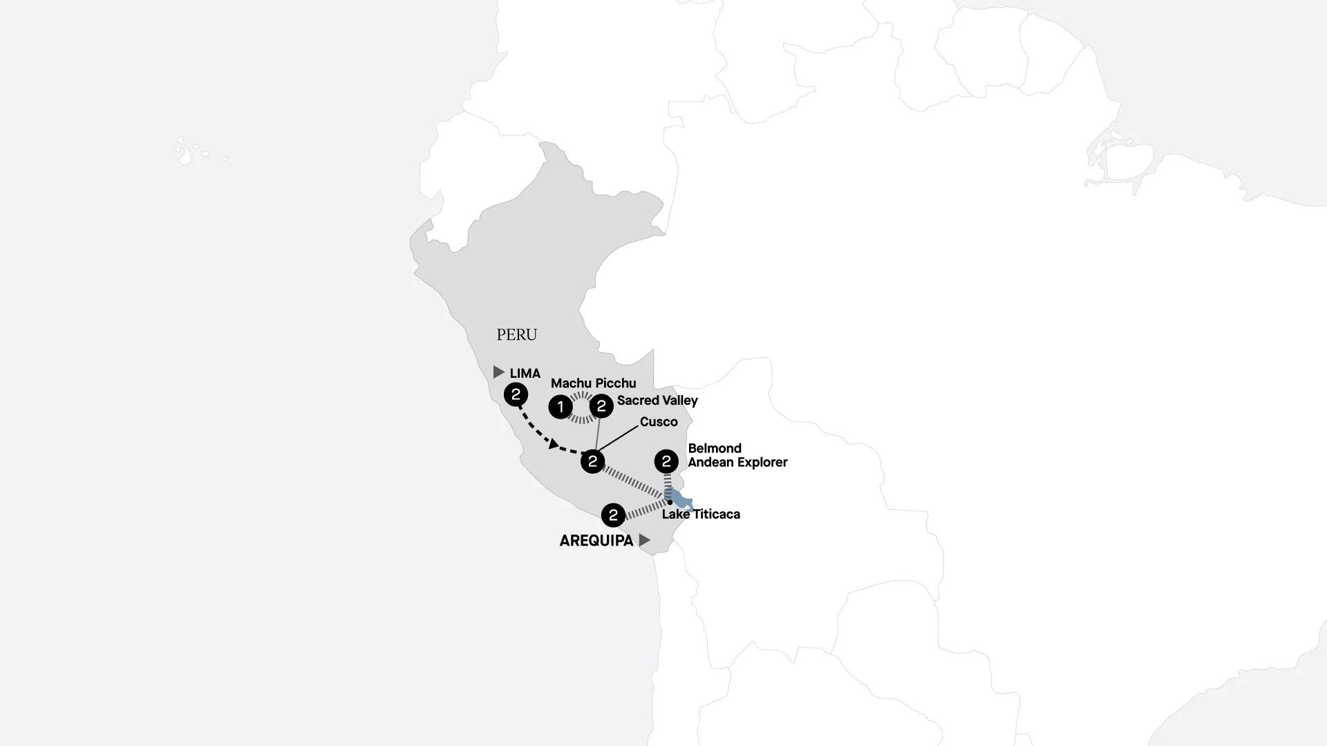 Peru's heart is revealed on this captivating 12-day Small Group Tour, limited to a maximum of just 24 guests. Visit the ruins of Pachacamac and witness a Peruvian Paso horse show in Lima. Explore the soul-stirring Sacred Valley, where ancient salt mines, fascinating Inca terraces, and centuries-old weaving practices await your discovery — then come face-to-face with the magnificent Lost City of the Incas, Machu Picchu. Weave through the Peruvian Highlands on a luxury rail journey aboard the Belmond Andean Explorer before concluding your tour in the 16th-century city of Arequipa.