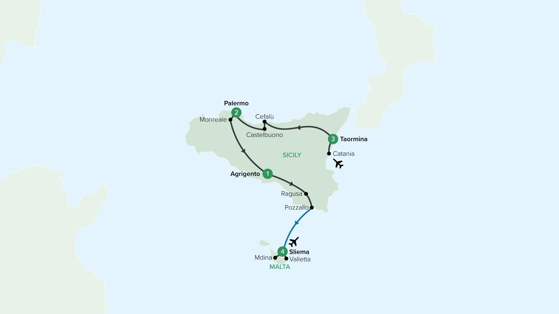 Uncover the rich heritage of Sicily and Malta on a small group tour through the Mediterranean steeped in history and coastal beauty. Travelling with no more than 24 guests from Giardini Naxos, explore Mount Etna and elegant Taormina, then journey through Cefalù, Palermo and Monreale to the ancient Valley of the Temples in Agrigento. Continue to Malta to discover vibrant Valletta and the timeless walled city of Mdina, blending centuries of culture, cuisine and sun-soaked scenery.