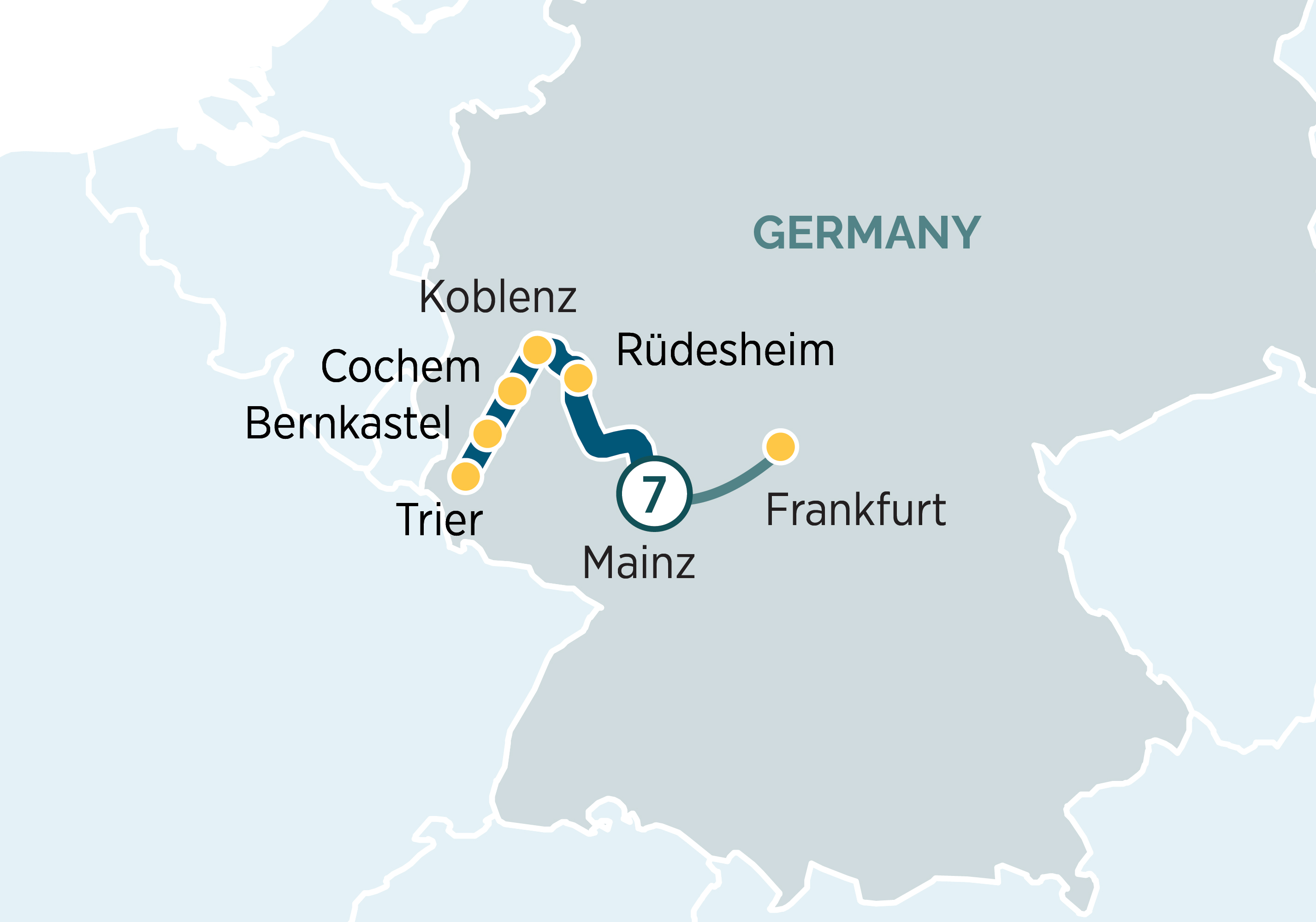 Embark on an exclusive wine lover’s cruise along the Moselle and Rhine rivers, passing beautiful landscapes, fairytale castles, medieval towns and vine-clad hills, where world-famous Riesling has been perfected for centuries. Enjoy up to five immersive wine tastings, including a unique EmeraldPLUS experience at Hieronimi and guided tours of celebrated vineyards and cellars. Savour interactive on board activities, such as wine classes with esteemed sommelier Alejandro Ferris, and curated cheese and wine pairings. Enrich your journey with guided visits to regional gems such as Eberbach Abbey and discover the region’s legendary history, culture, and medieval charm in enchanting towns like Cochem and Trier, founded by the Romans. Curated for those passionate about wine and heritage, this luxury cruise is your passport to experiencing the authentic spirit, flavours, and beauty of Germany’s legendary wine region.