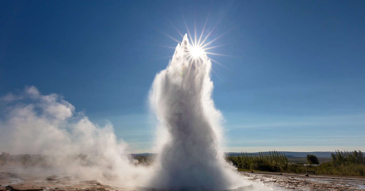 Close by is the Great Geysir. With the claim to fame of being the first spouting spring known to Europeans, Geysir has given all such springs their name. However, it's the Strokkur, meaning 'The Butter Churn', which is the main attraction these days, due to its impressive 30 metre/98 foot eruptions every few minutes.