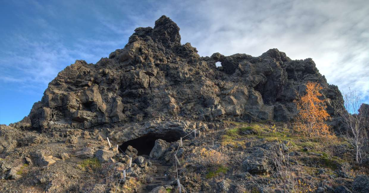 Today we'll spend time exploring Lake Myvatn, a volcanic lake formed 3,800 years ago when a lava flow blocked the valley. It's now one of the most fertile spots in the world and attracts a wide range of nesting ducks. We'll take a short walk on lava fields and discover Dimmuborgir's dark castle. Created from lava, the arches and columns here are said to resemble a castle and the landscape is a great spot for photography.