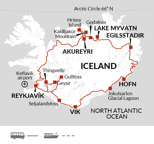 The transfer back to Keflavik Airport (KEF) will be by the public FlyBus shuttle bus service and your tour leader will provide you with details of your pick-up time and your voucher for the service.
