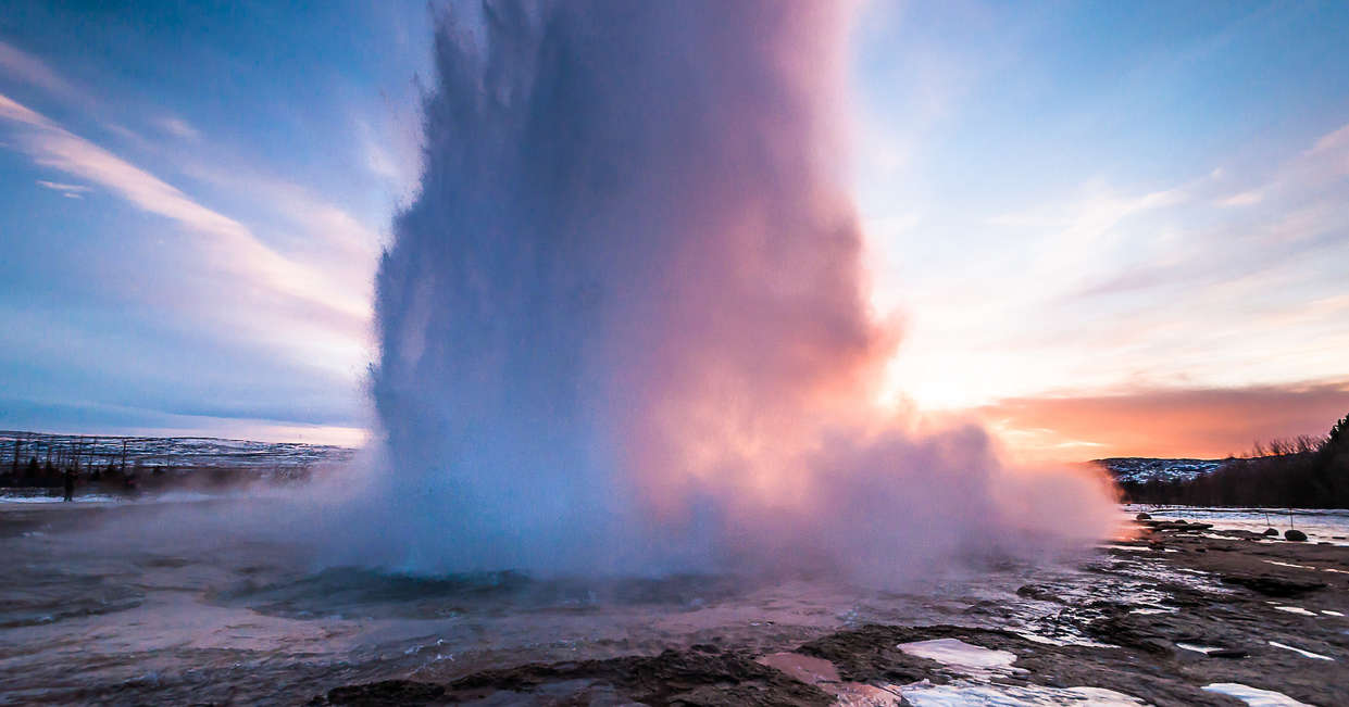 Today, we'll take a tour of Iceland's 'Golden Circle', which includes many of the natural wonders which make the country so famous. Thingvellir is a rare site of both historical and geological importance. Meaning 'Parliament Plains', this was the location of Iceland's first National Assembly from 930AD until 1798 and, as such, is hugely significant in the country's cultural heritage. What's more, the impressive landscape sits on a unique spot where the Mid-Atlantic Ridge can be seen on dry land before disappearing to the ocean floor. This provides the quirky opportunity to place one foot on the North American tectonic plate and one foot on the Eurasian plate.