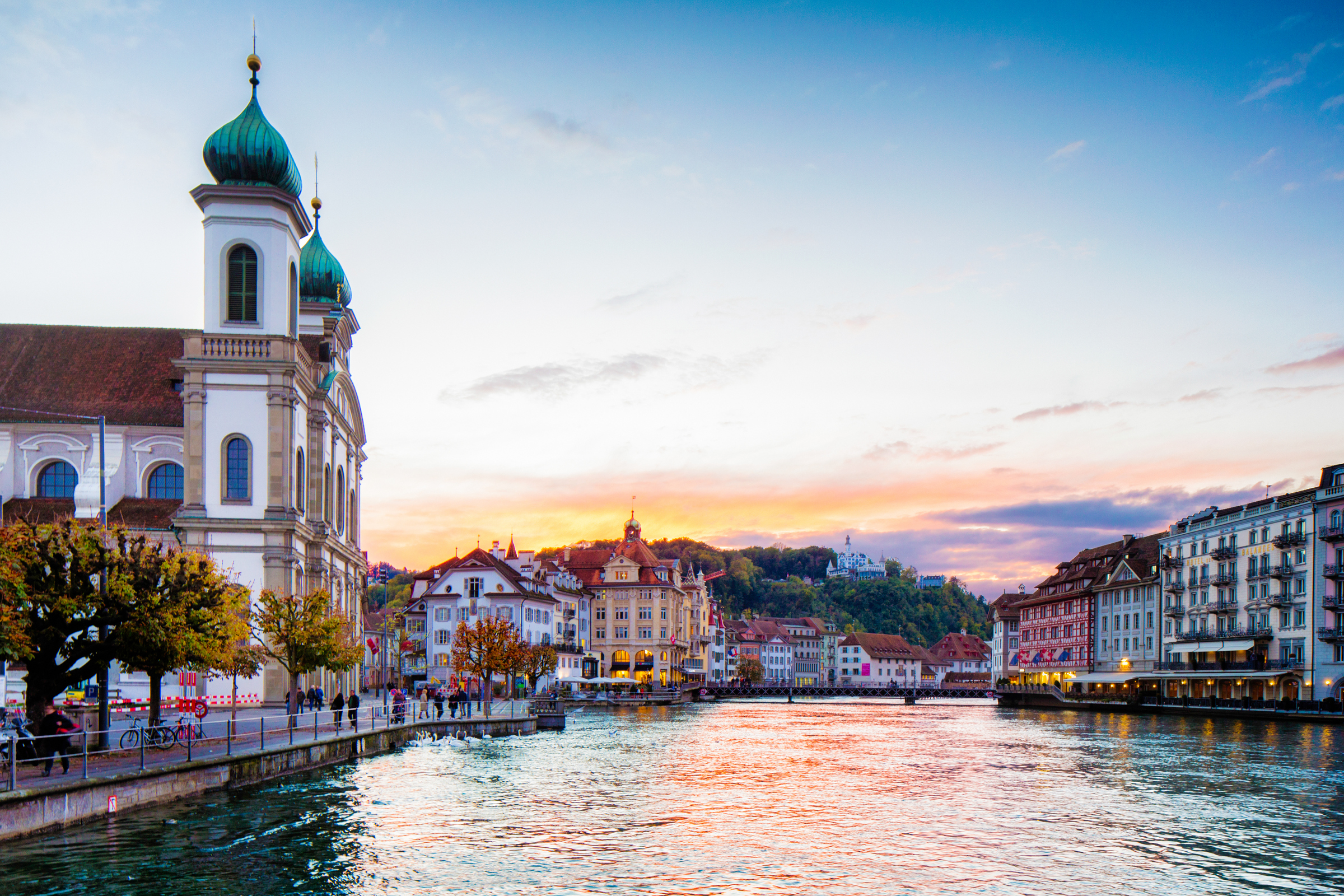 Your journey continues across the heart of Switzerland as you travel by train via Interlaken to Lucerne. This route offers a stunning transition from the high Alps to the rolling hills and turquoise lakes of Central Switzerland. Arriving in Lucerne, you'll find a city that feels like a storybook illustration, with its preserved medieval architecture and stunning lakeside setting.
