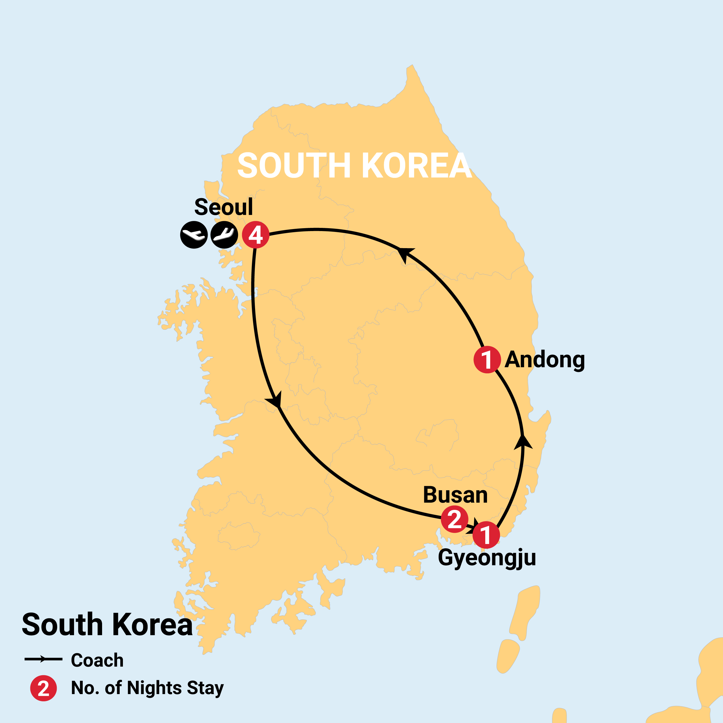 Your South Korean adventure comes to an end today. Following breakfast, you will be transferred to the airport for your onward journey.