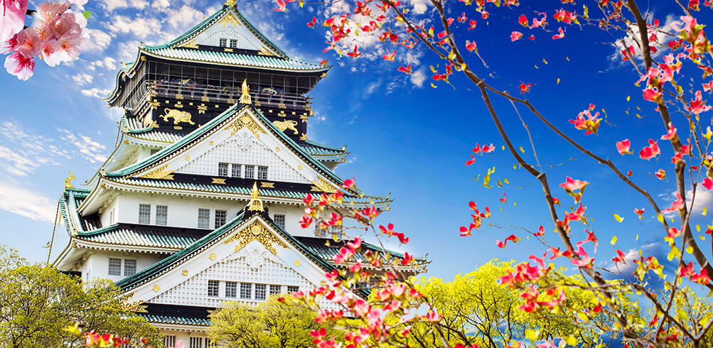 After breakfast, start your day with a guided visit to Osaka Castle via public transport (entrance fees and transportation at your own expense), a historic landmark symbolising Osaka.