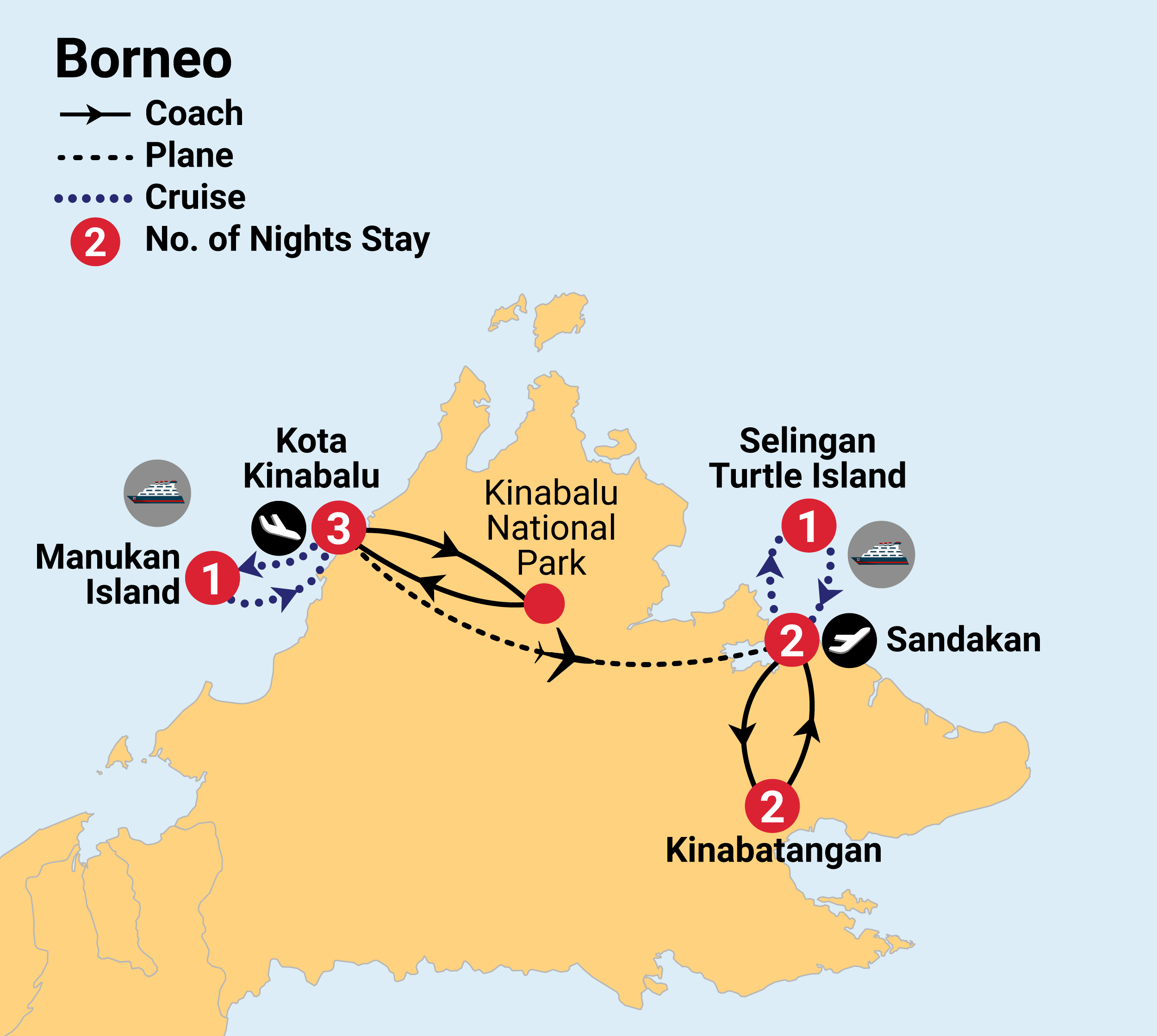 Please pack for a 1-night stay on the island and leave the rest of your luggage in your Kota Kinabalu hotel.