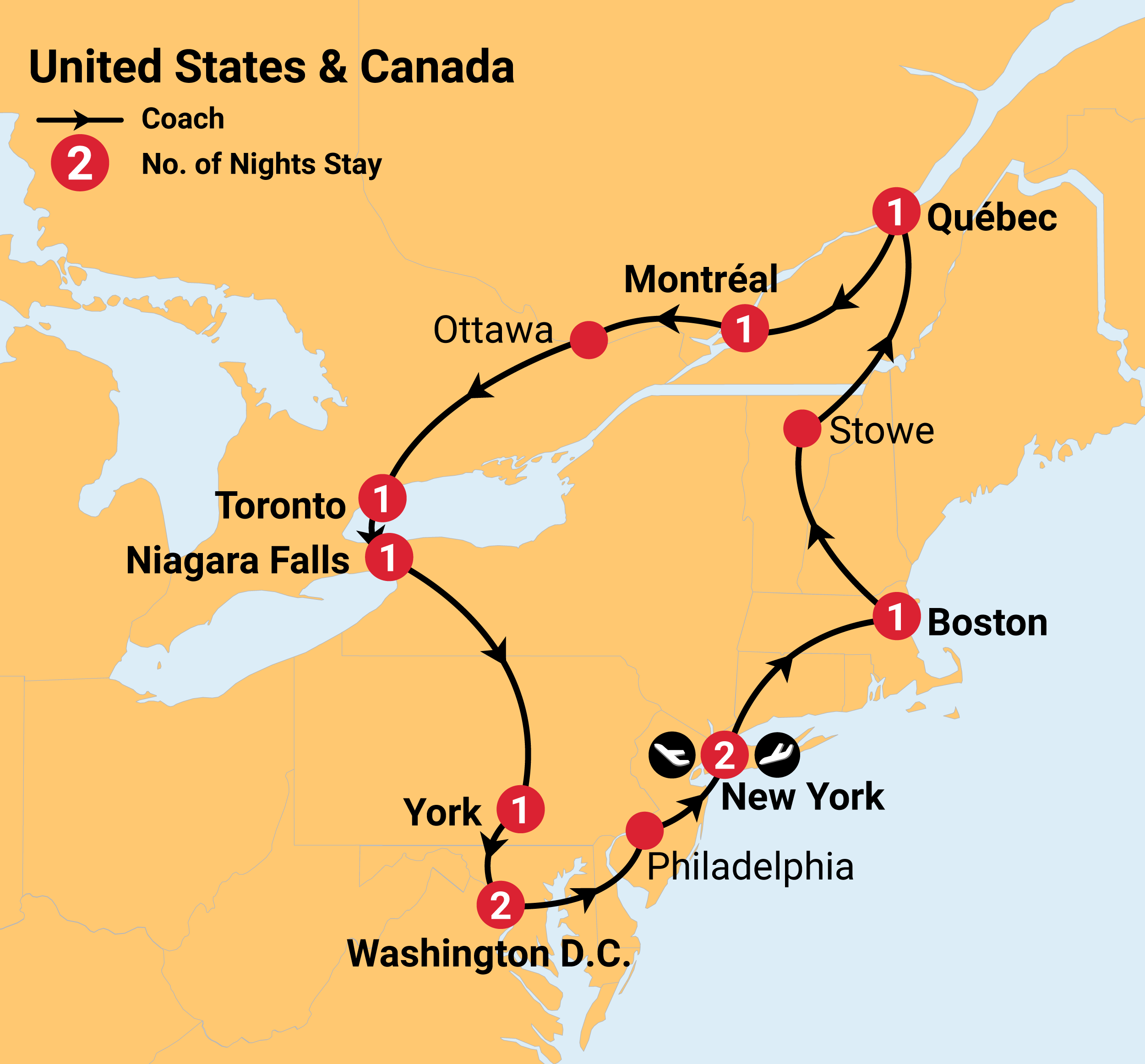 Today your journey of Eastern USA and Canada comes to an end. At the appropriate time, please make your way to the airport for your onward journey.