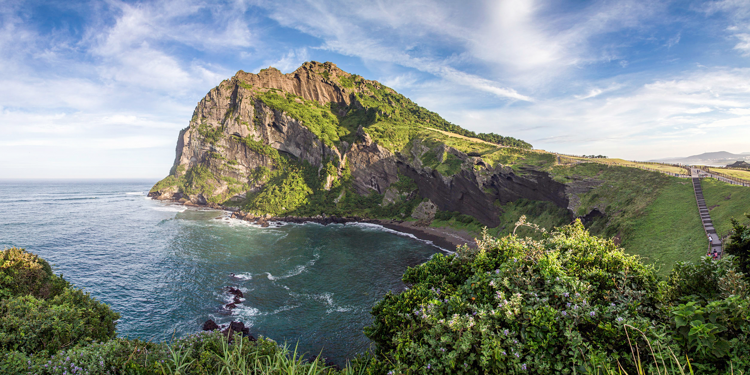Your day continues at the iconic Seongsan Ilchulbong, a dramatic volcanic cone rising 180 metres above sea level, formed by underwater eruptions more than 5,000 years ago. Take in sweeping coastal views from this UNESCO World Heritage-listed site before concluding at Jeju Stone Park, an open-air ecological museum celebrating the island's distinctive stone culture, myths, and natural heritage.