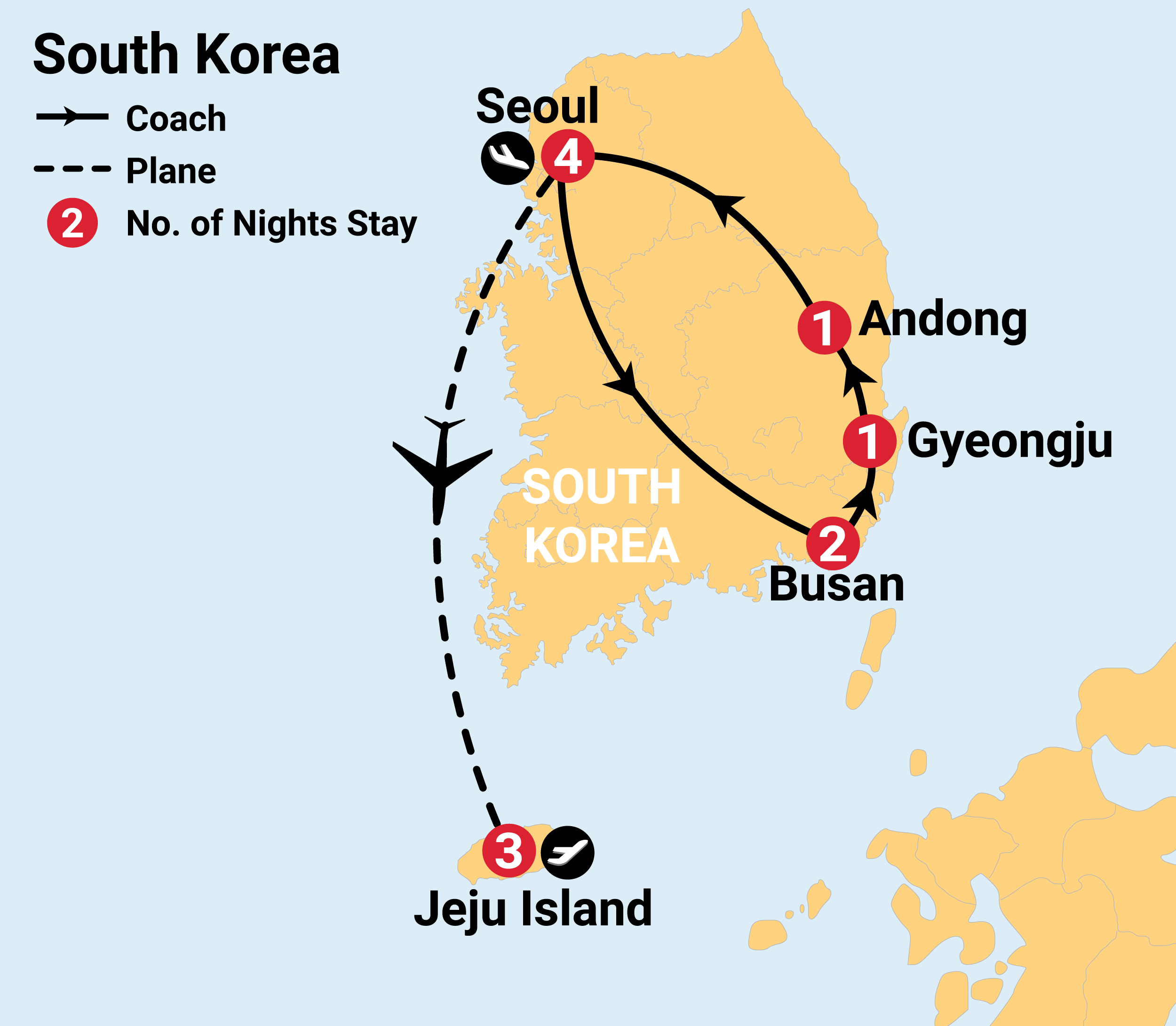 Your South Korean adventure comes to an end today. Following breakfast, you will be transferred to the airport for your onward flight.