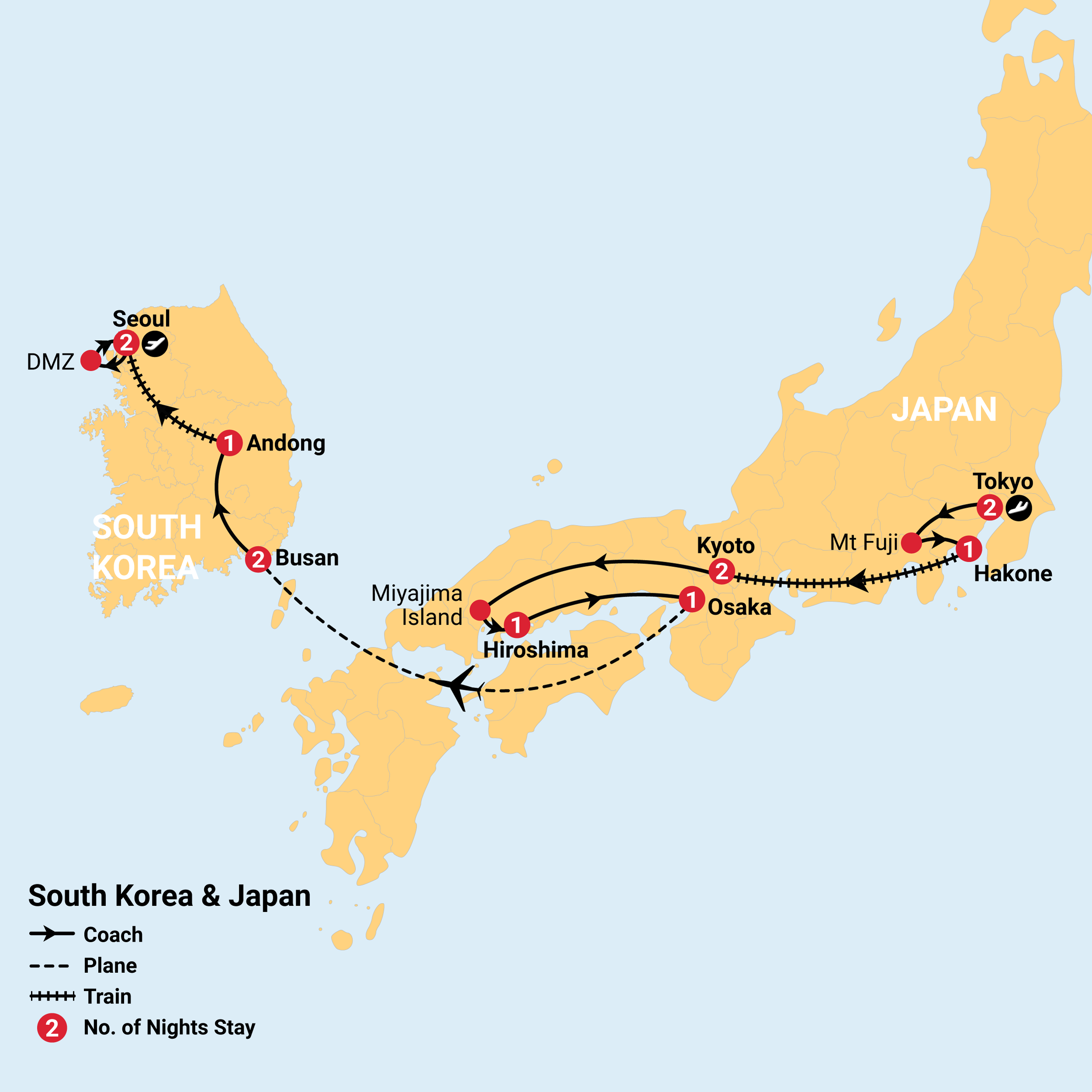 On your departure from Osaka you will say goodbye to your tour leader, and your group will be met by a new tour leader in Busan, who will meet and greet you, coordinate your activities in town and be reachable to assist you as needed.