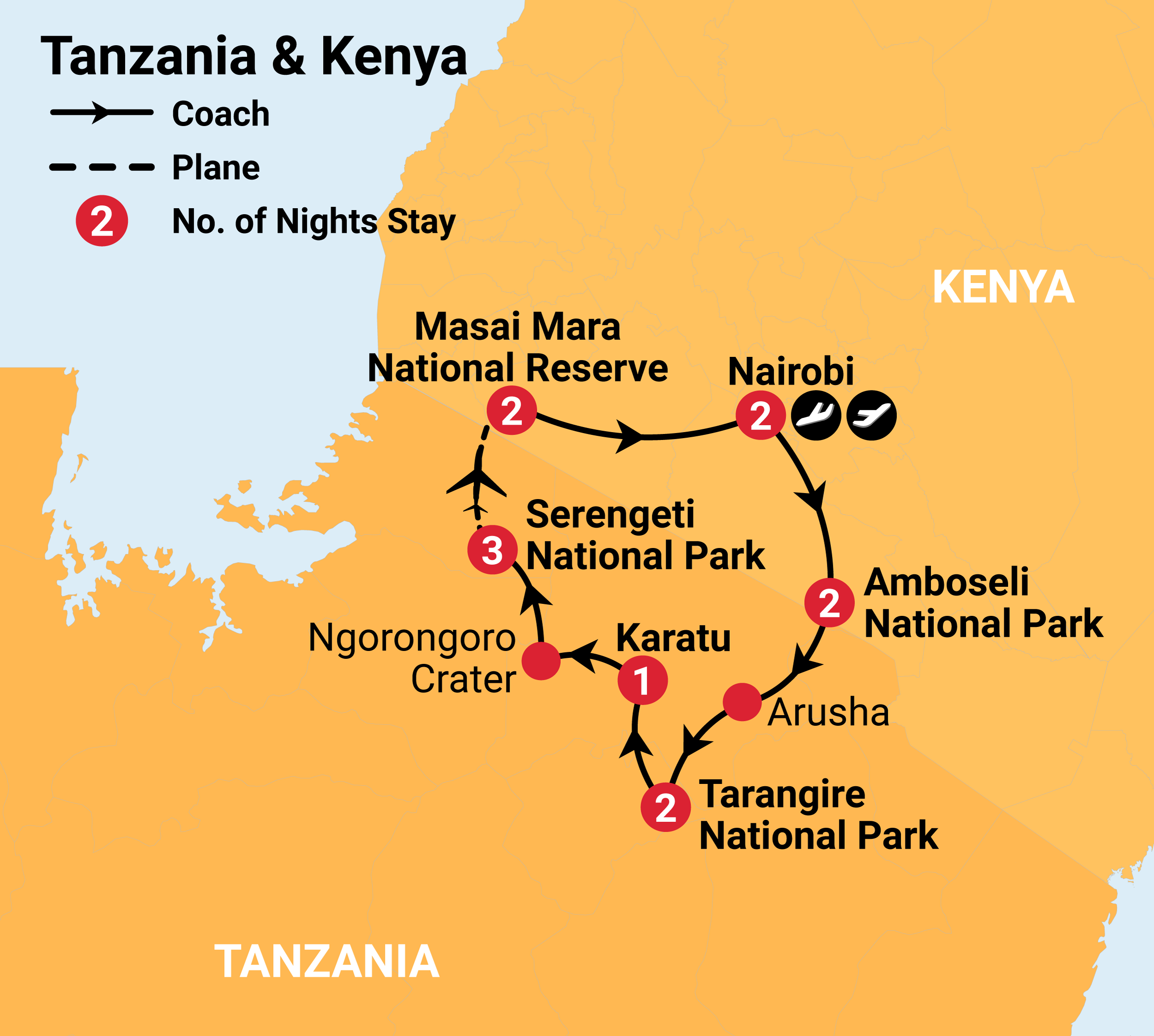 Your journey will include two flights, with a change at the Tanzania-Kenya border crossing at Isebania. The border crossing will be conducted by a short shuttle bus transfer. Please keep your passport handy. Note, there will be a change of guide when you return to Kenya.