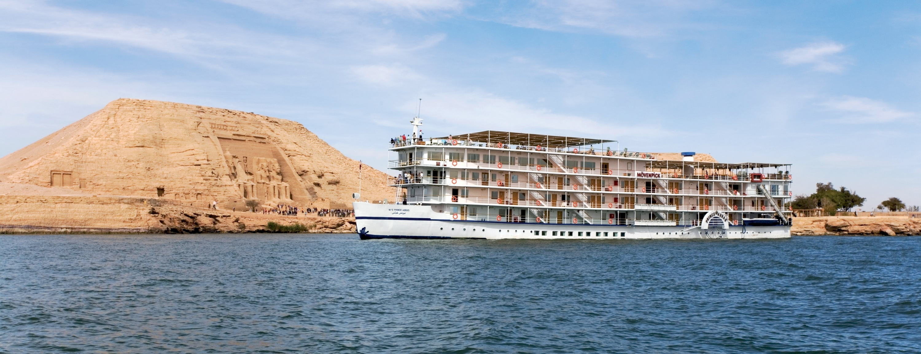 Please note that as the sailing distance between Aswan and Luxor is approximately 200km, that it is typical for all cruises operated along the Nile to be docked for majority of the time to conduct sightseeing, with the sailing to occur in the evening. The vessel will be docked either in Aswan or Luxor. Depending on the time of year and number of vessels operating at the same time, you will also find that all vessels are docked beside one another, which is beyond our control.