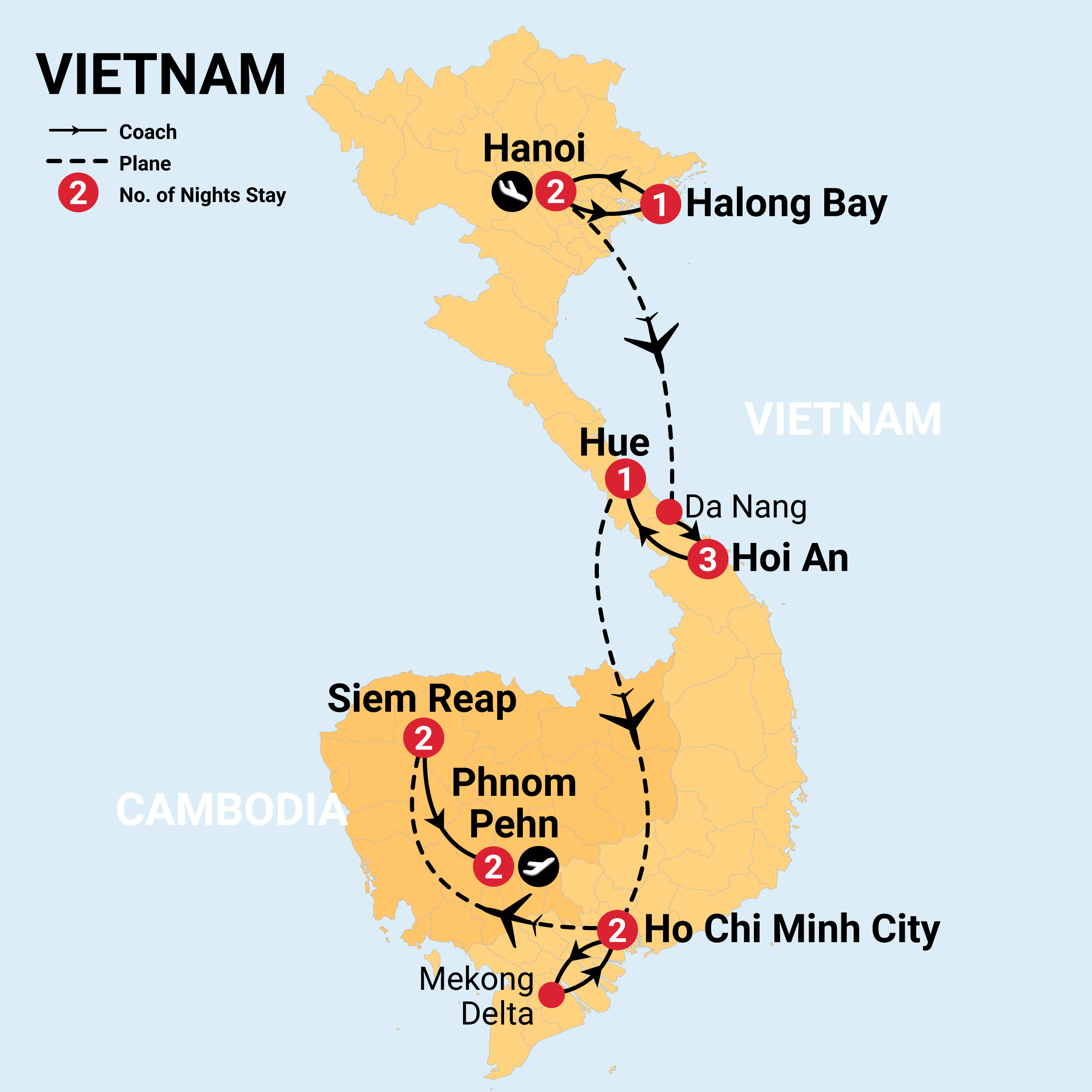 Explore the cultural and historical highlights of Vietnam and Cambodia over 14 unforgettable days: enjoy an overnight Halong Bay cruise and explore the charming city of Hoi An. Discover the rich history of Cambodia, starting in Siem Reap, the gateway to the Angkor ruins, before heading to Phnom Penh to experience the exciting capital.
