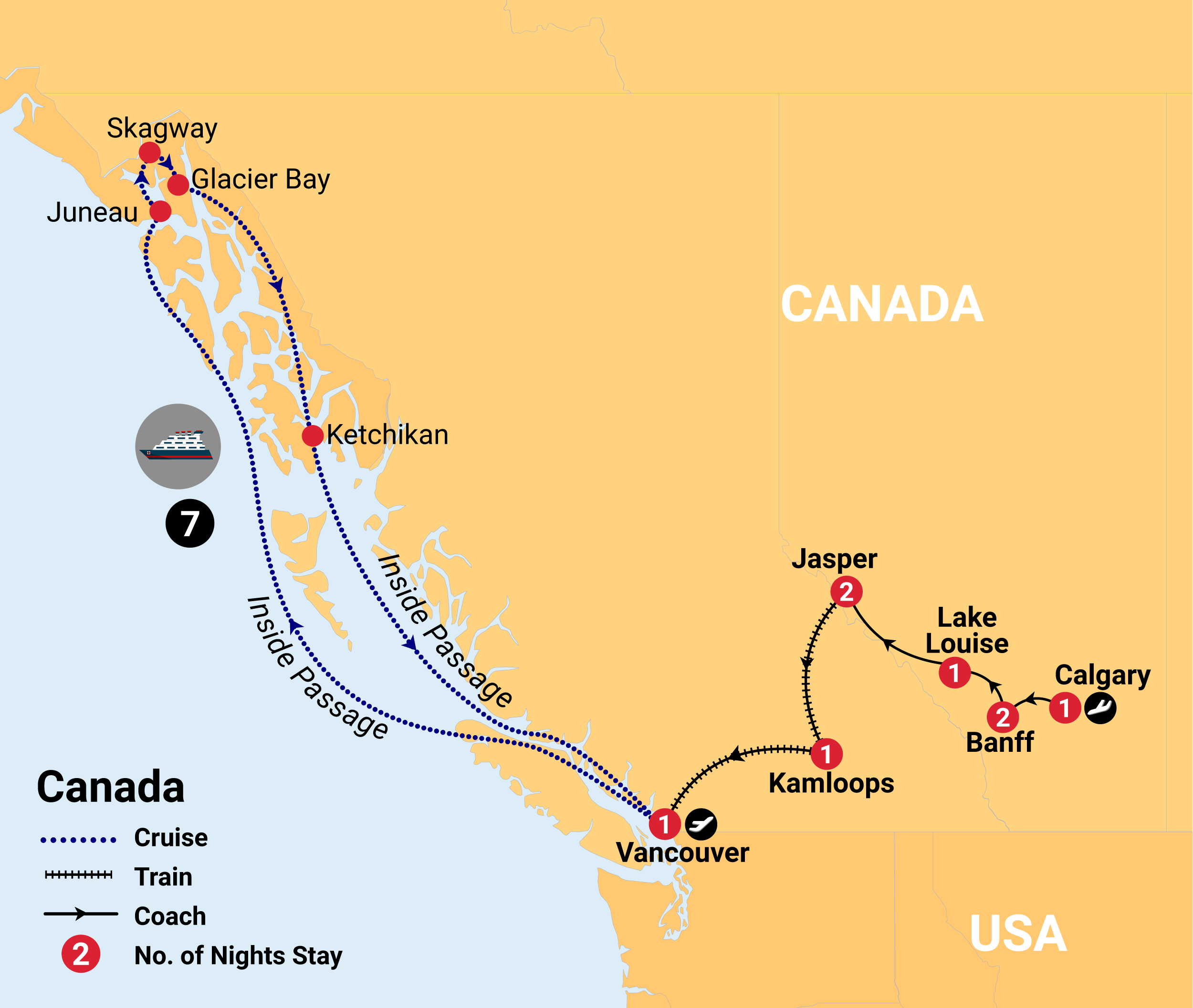 Your Alaska Inside Passage Cruise departs today at 3 pm. Make your own arrangements to the Vancouver Cruise Ship terminal in time for check-in to the cruise.
