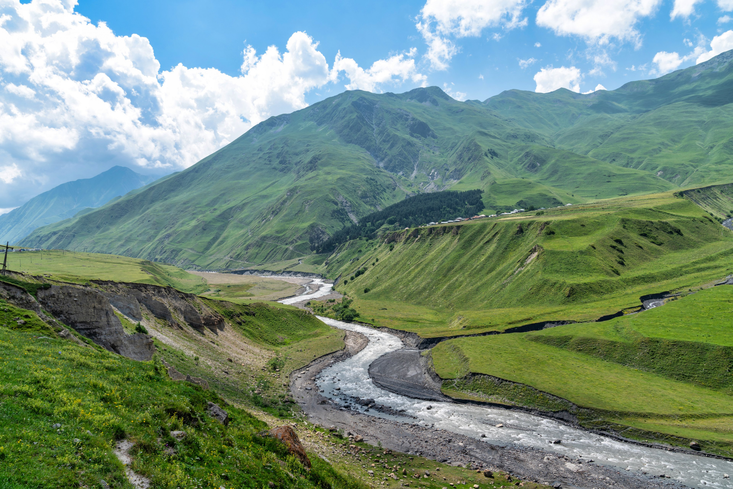 The hike to Gveleti takes approximately 1.5 hours and is of moderate difficulty. However, there is an easier route leading to a small waterfall, which is shorter. The choice of path will be done on the day as it depends on the group's fitness level.