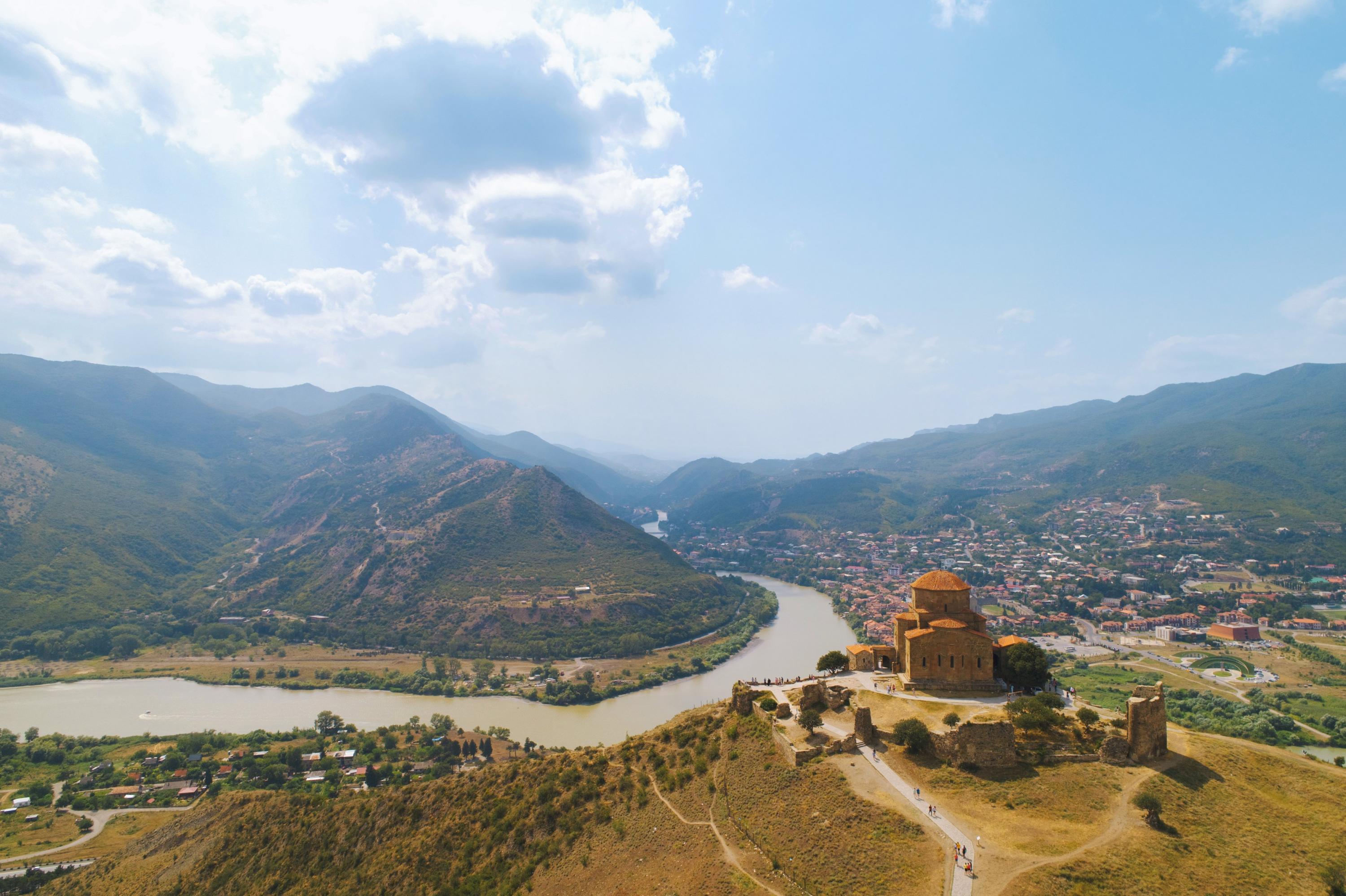 After breakfast, we drive to Mtskheta, the ancient capital of Georgia, situated at the confluence of the Aragvi and Mtkvari rivers. There, we will visit two UNESCO World Heritage Sites. The first is Jvari Monastery, a 6th-century cross-shaped structure perched atop a cliff, offering a breathtaking view of the confluence of the two rivers. This site holds historical significance as it is where St. Nino, a female evangelist, erected a large wooden cross on the location of a former pagan temple. We then visit Svetitskhoveli Cathedral, an 11th-century fortified cathedral and one of Georgia's holiest sites. It is believed to be the burial place of the Robe of Christ, making it a significant pilgrimage destination.
